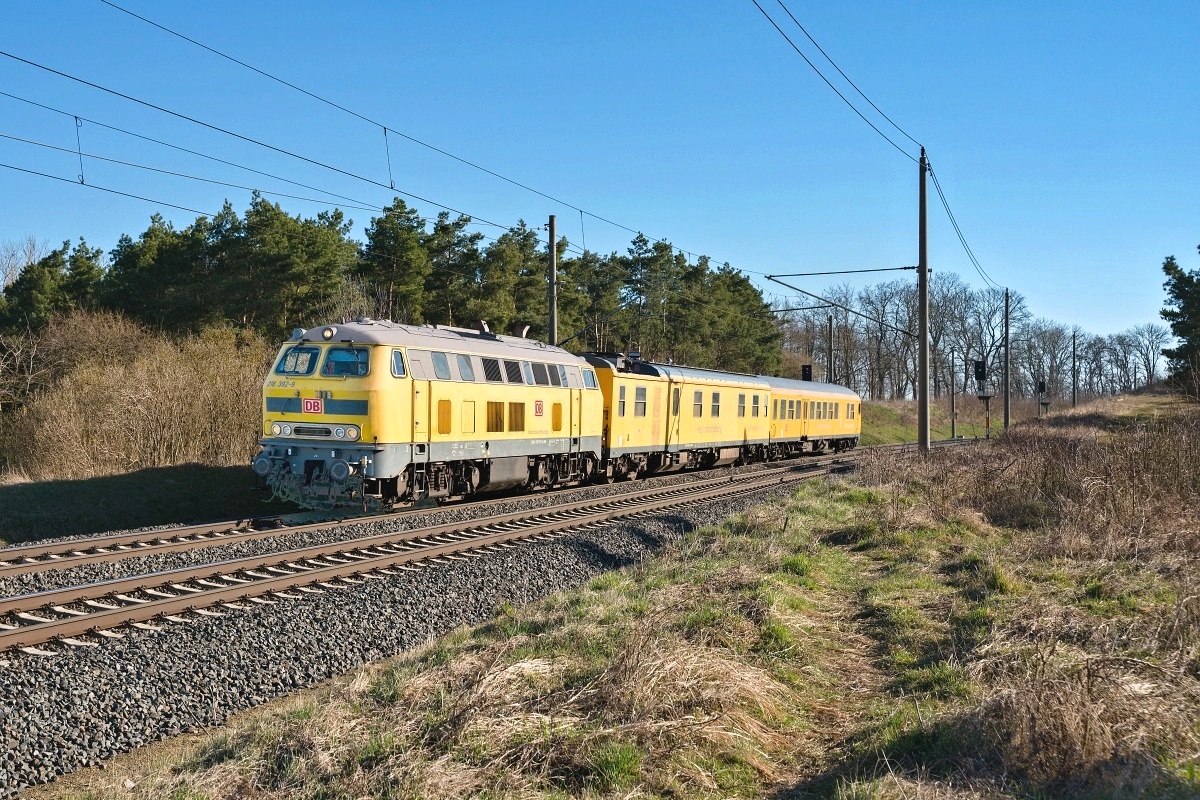 Damit wurde ein neu zusammengestellter Schienenprüf-Wendezug mit der Lok 218
