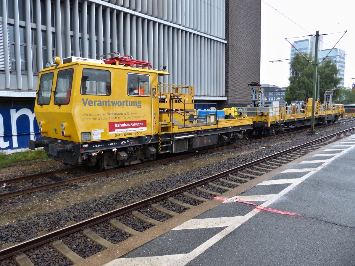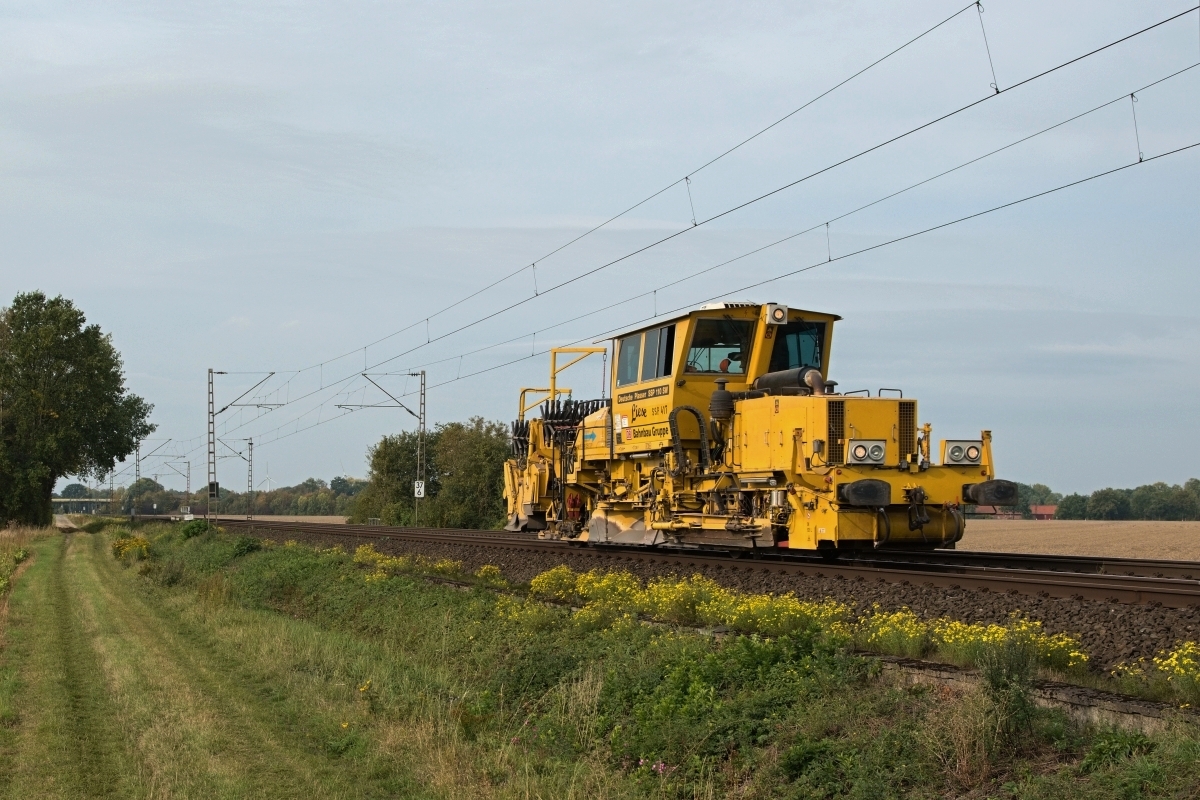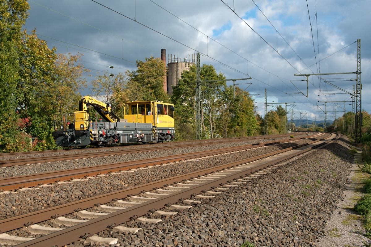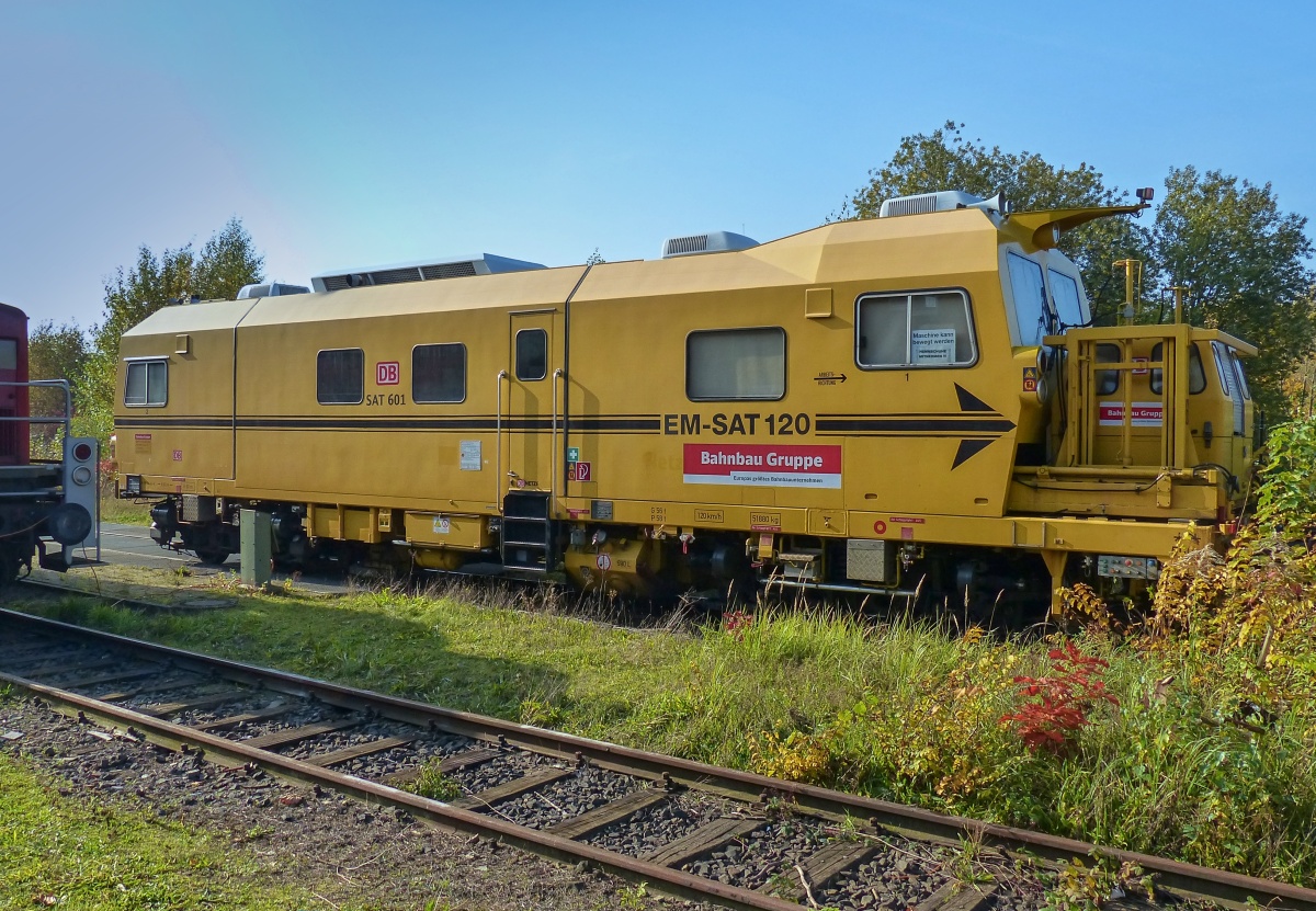 Gleisvormesstriebwagen EM-SAT 120 der Bahnbaugruppe in Minden bot sich am 27.10.2015 folgender Anblick: