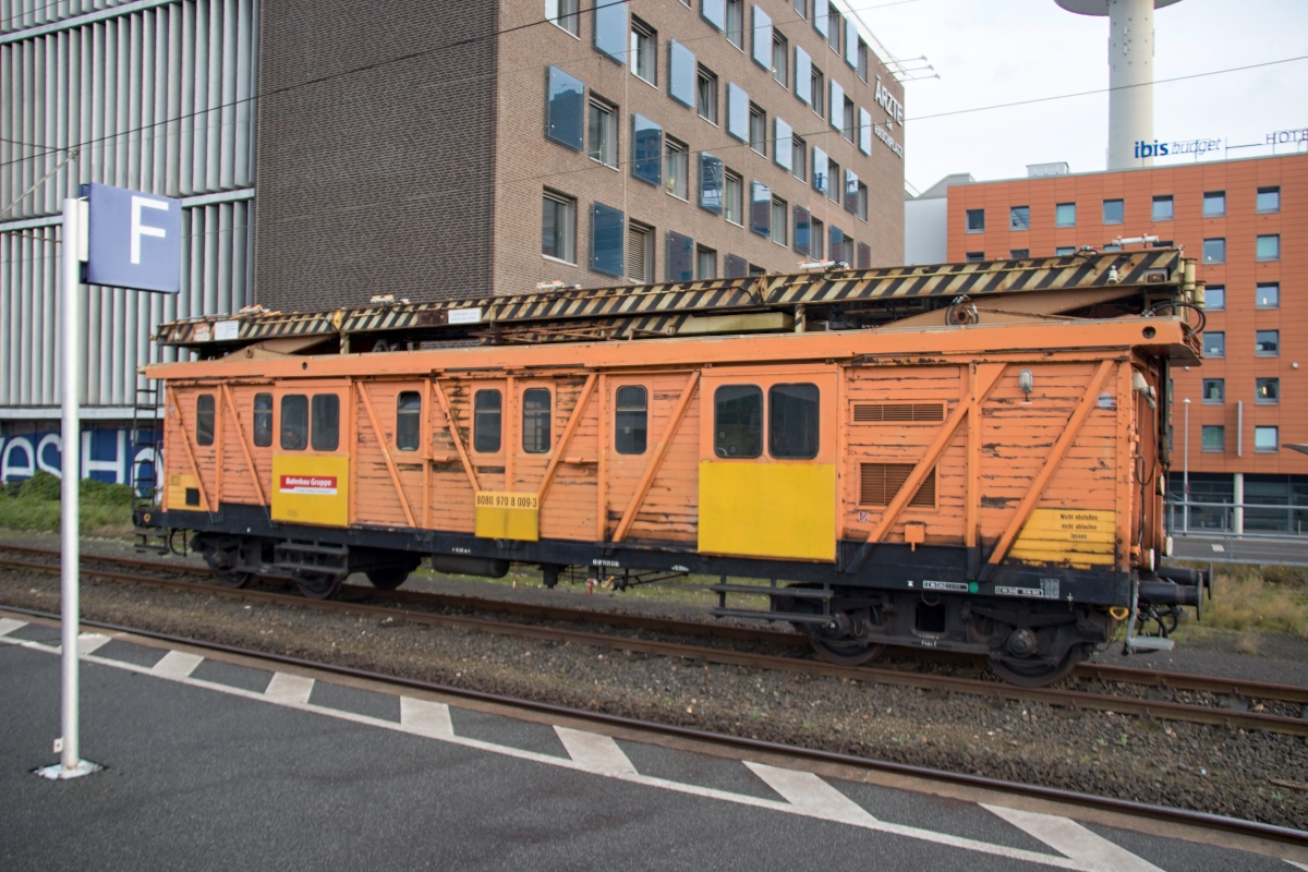 Gos Bahndienstwagen/Wohnwagen (40 80 1411 036-0) und am Zugschluss auch ein