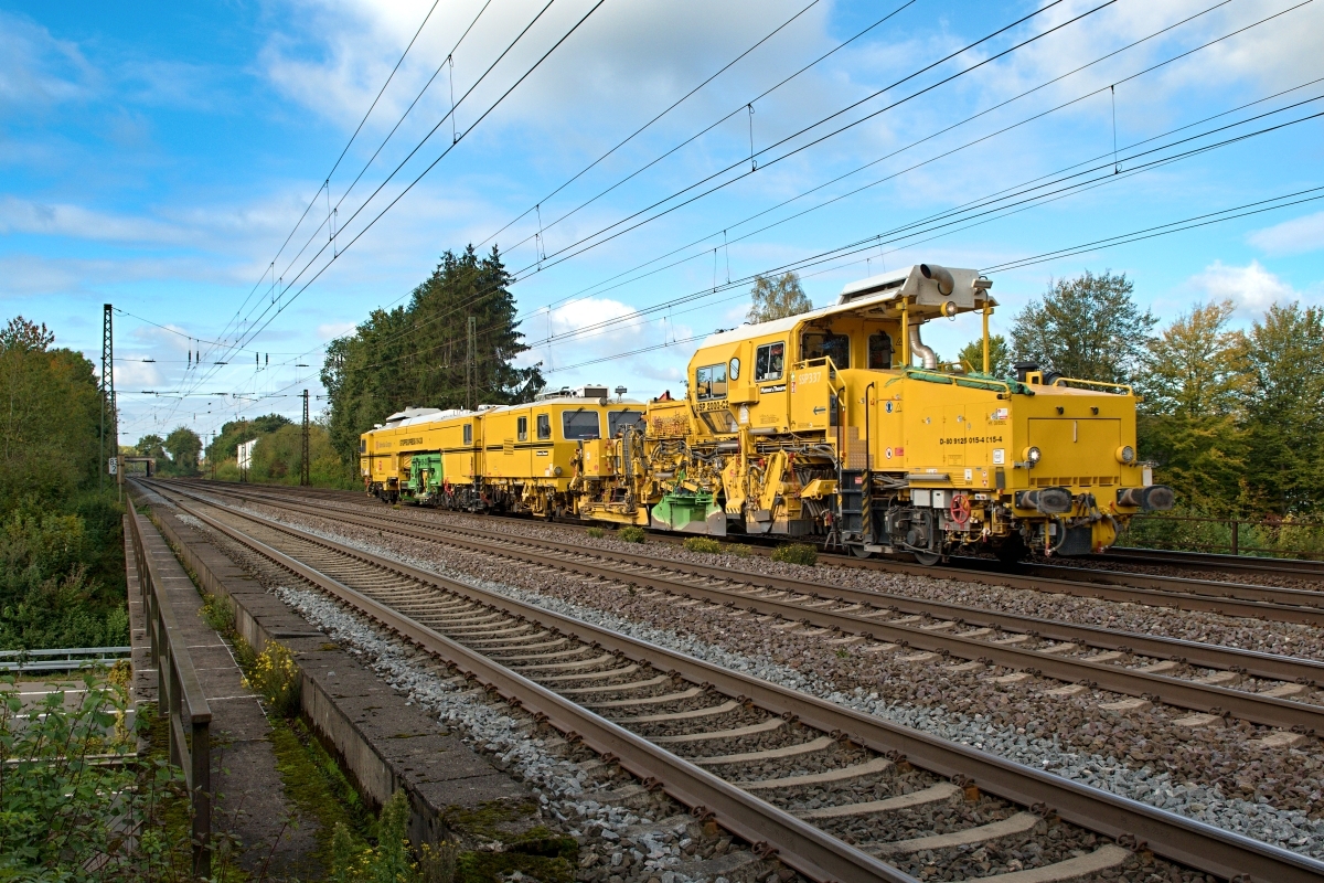 Bahnbau Gruppe Deutsche Plasser SSP 110 SW/SSP 521 (NVR: 97 16 40 063 18-8) getauft auf "Moritz" vorne und