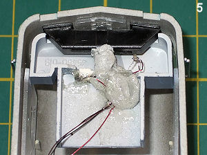 In Bild 5 hat dabei die weiße LED schon ihren Platz gefunden und ist mit UHU