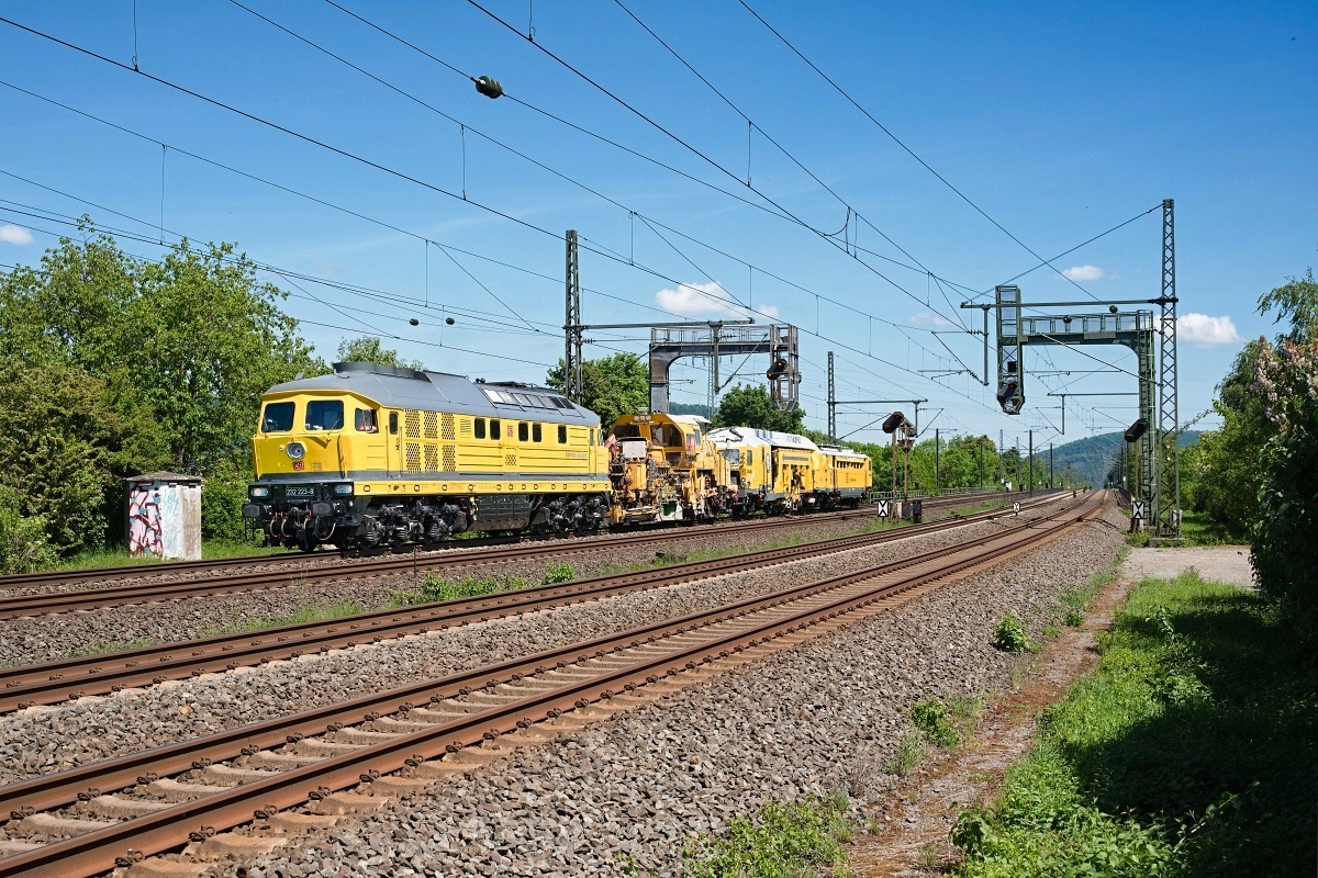 Dto. 232 223-8 am 11.05.2025 bei Bad Oeynhausen (HOEY) mit einem Bauzug Rtg.