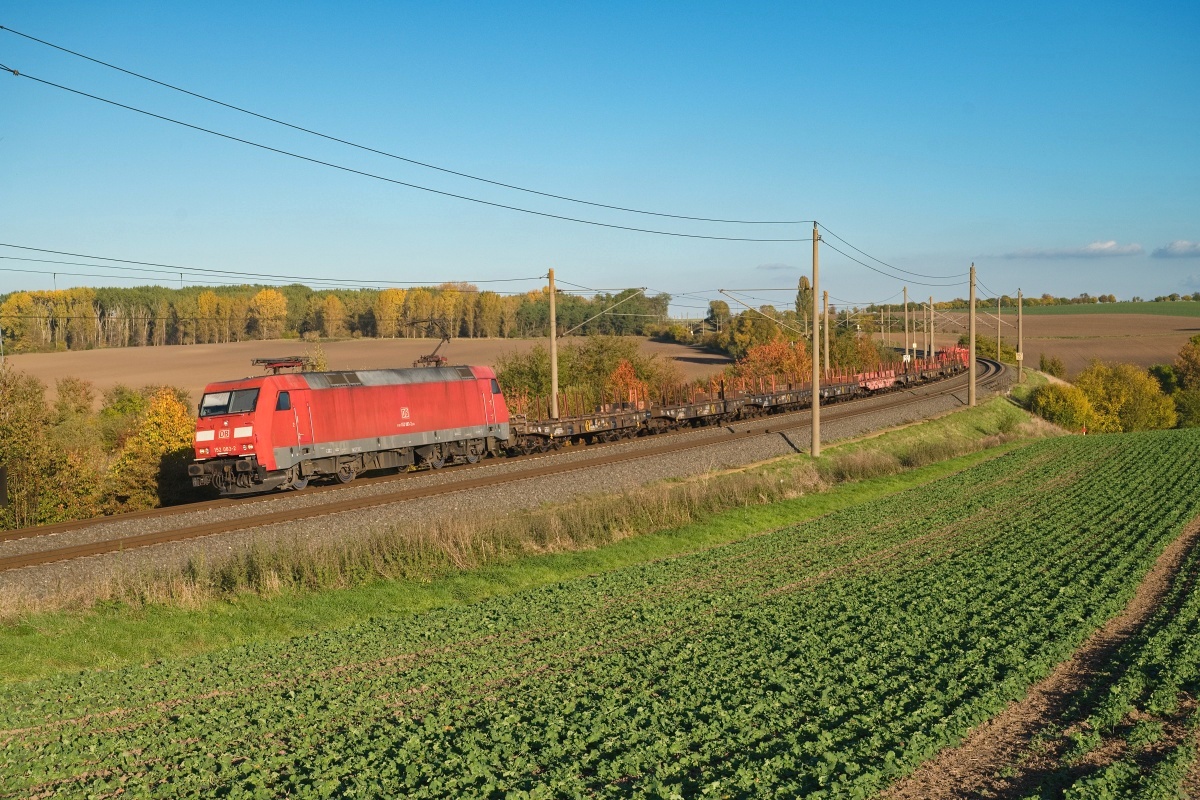 Dto. 152 083-2 am 23.10.2024 bei Ovelgünne (LOV) mit einem Stahlzug Rtg.