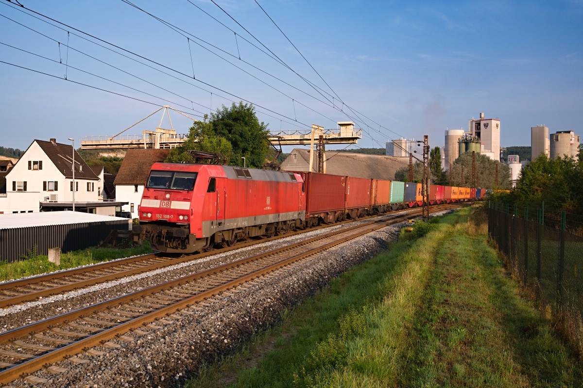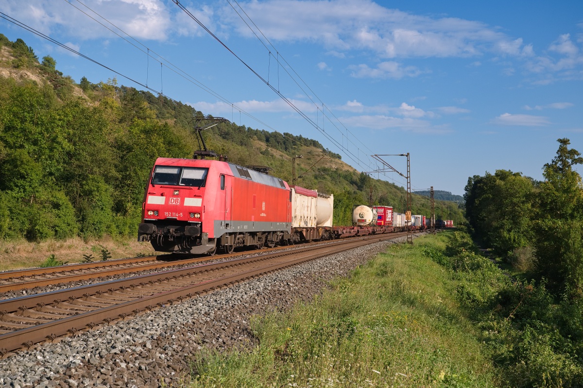 Dto. 152 108-7 früh morgens am 23.08.2024 bei Karlstadt (NKA) mit einem KT
