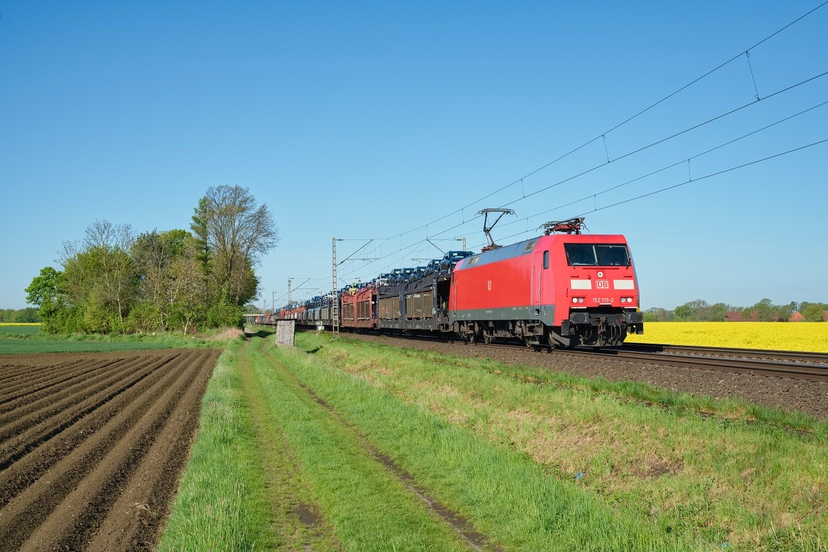 Dto. 152 115-2 am 26.04.2025 bei Lindhorst (HLH) mit einem Schenker Voll-Ga