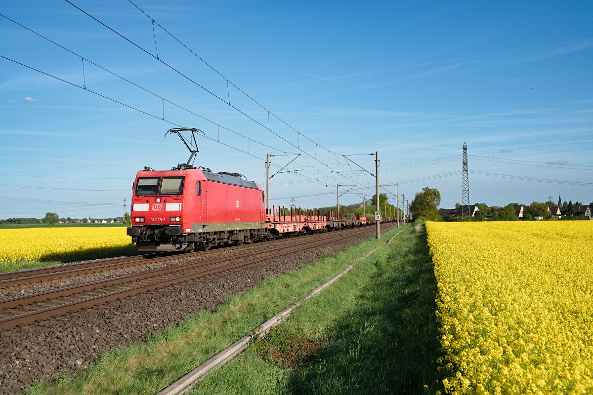 Dto. 185 076-7 am 17.03.2025 bei Ovelgünne (LOV) mit einem EZ Rtg.