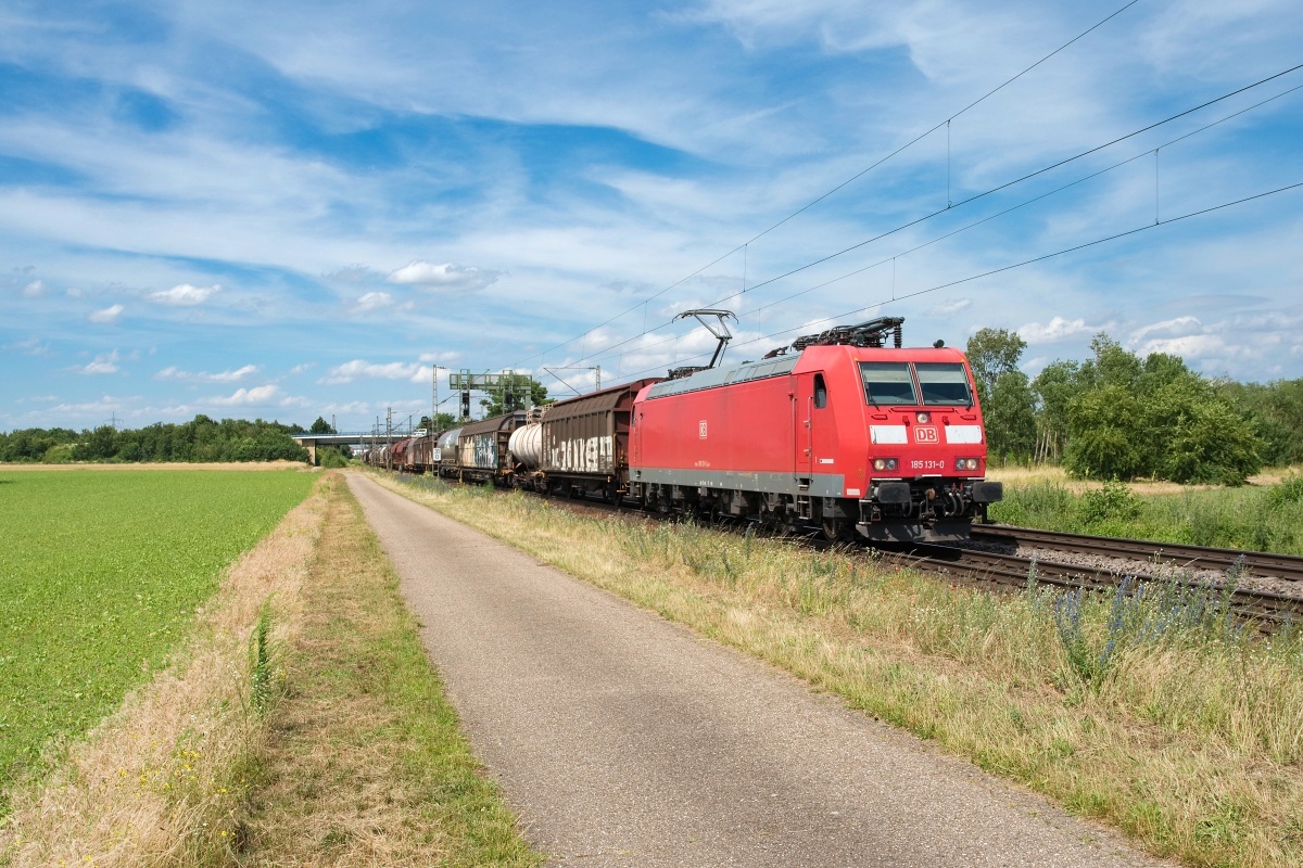 Dto. 185 148-4 am 29.06.2021 bei Altheim (FAT) mit dem EZ 51893 von Mannheim
