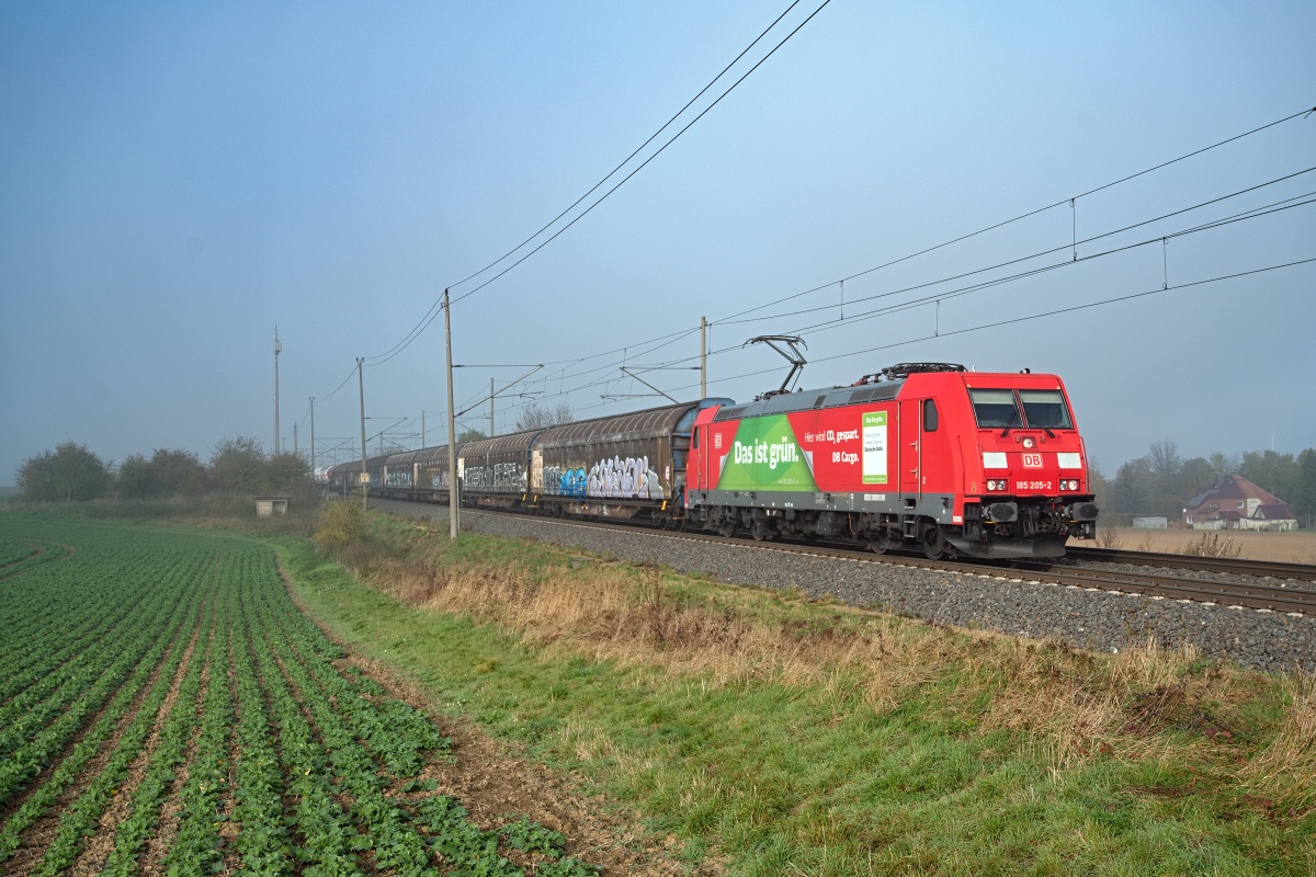 Dto. 185 205-2 im Morgennebel der Börde am 24.10.2024 bei Ovelgünne (LOV)