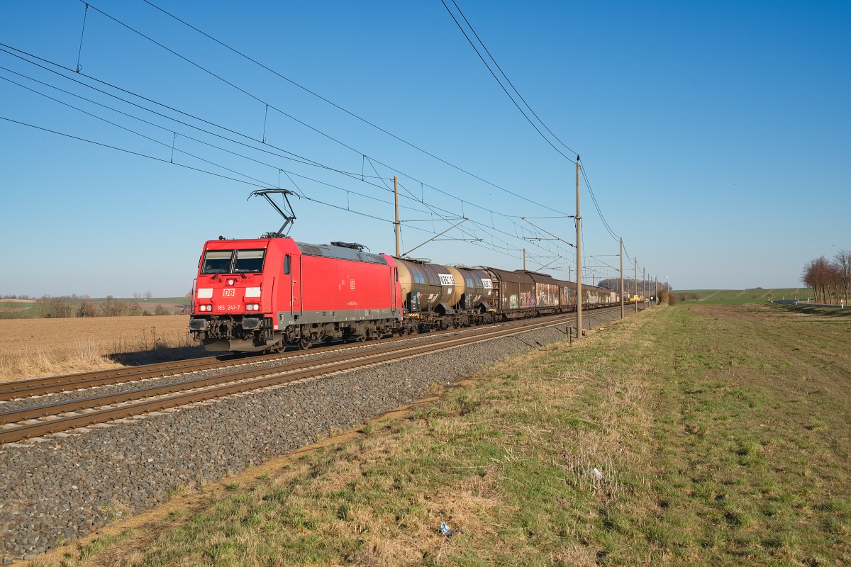 Dto. 185 241-7 spät nachmittags am 19.03.2025 bei Ovelgünne (LOV) mit dem EZ 51099