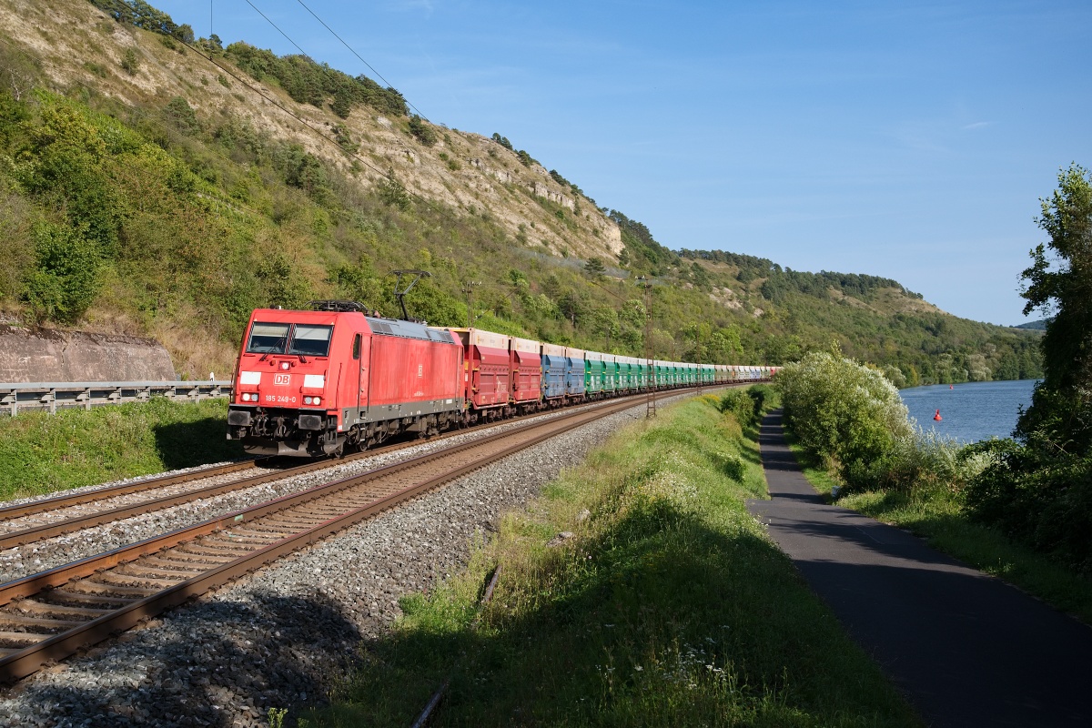 Dto. 185 244-1 am 06.10.2022 bei Retzbach (NREZ) mit einem voll beladenen KT
