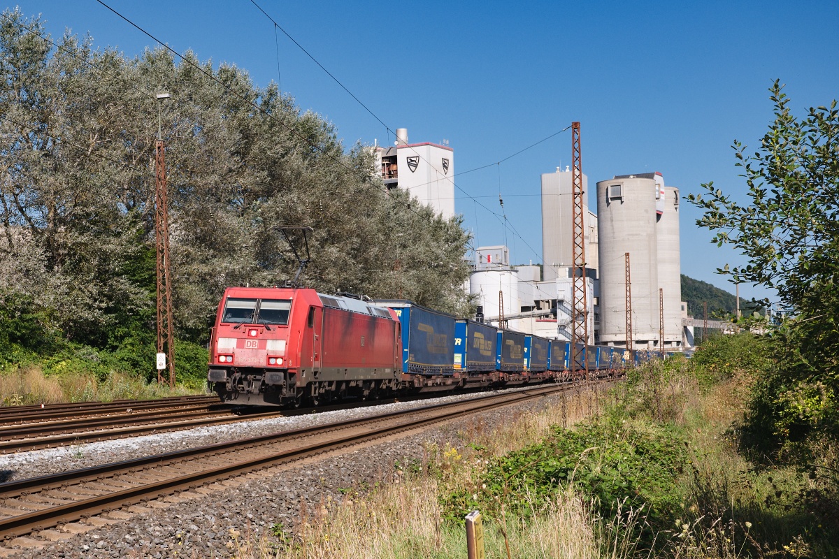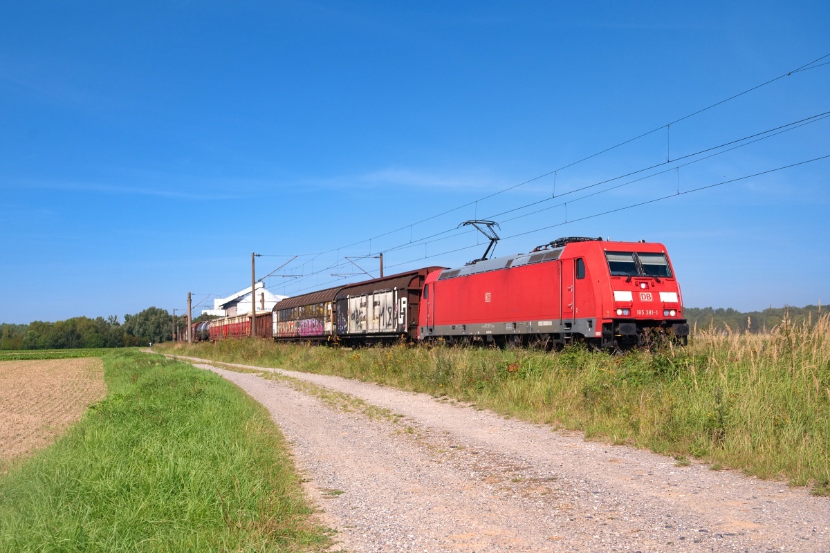 Dto. 185 391-0 am 10.08.2023 bei Wernfeld (NWFD) mit einem KLV Rtg.