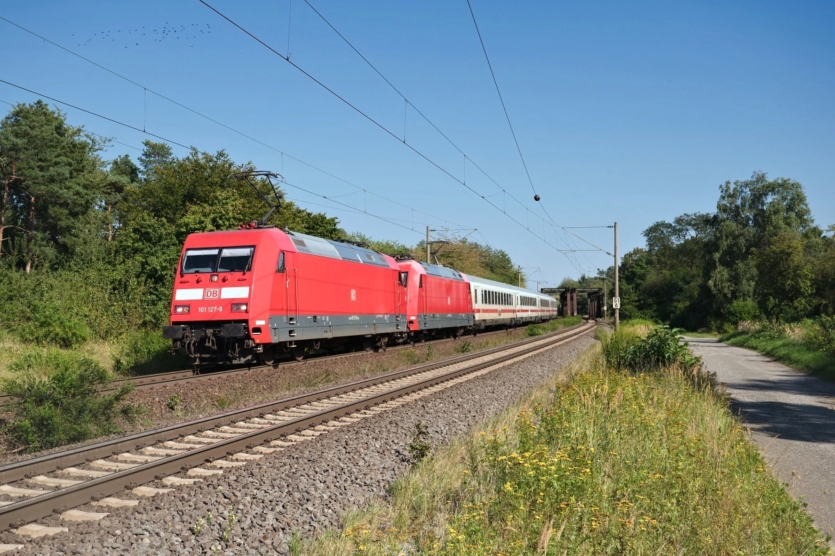 Dto. 101 127-9 am 12.10.2022 bei Bückeburg (HBKB) Evesen mit dem IC 142 von