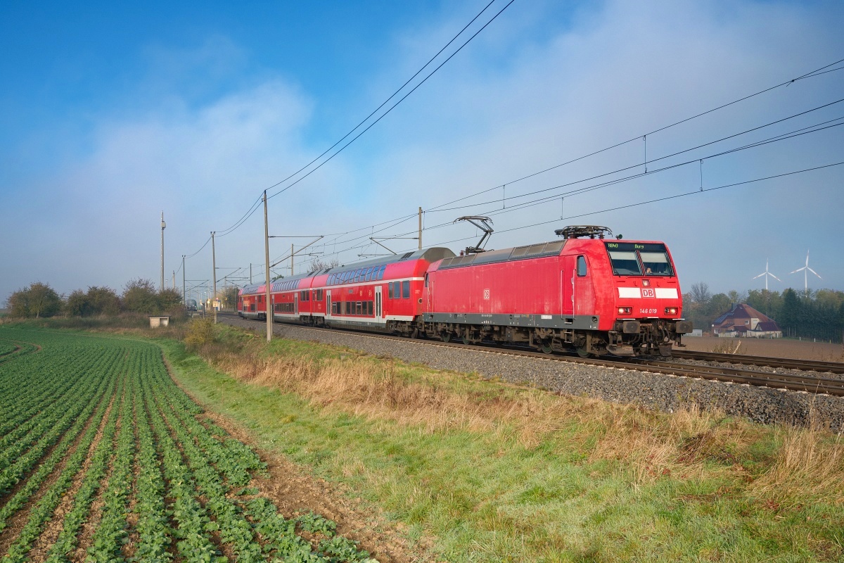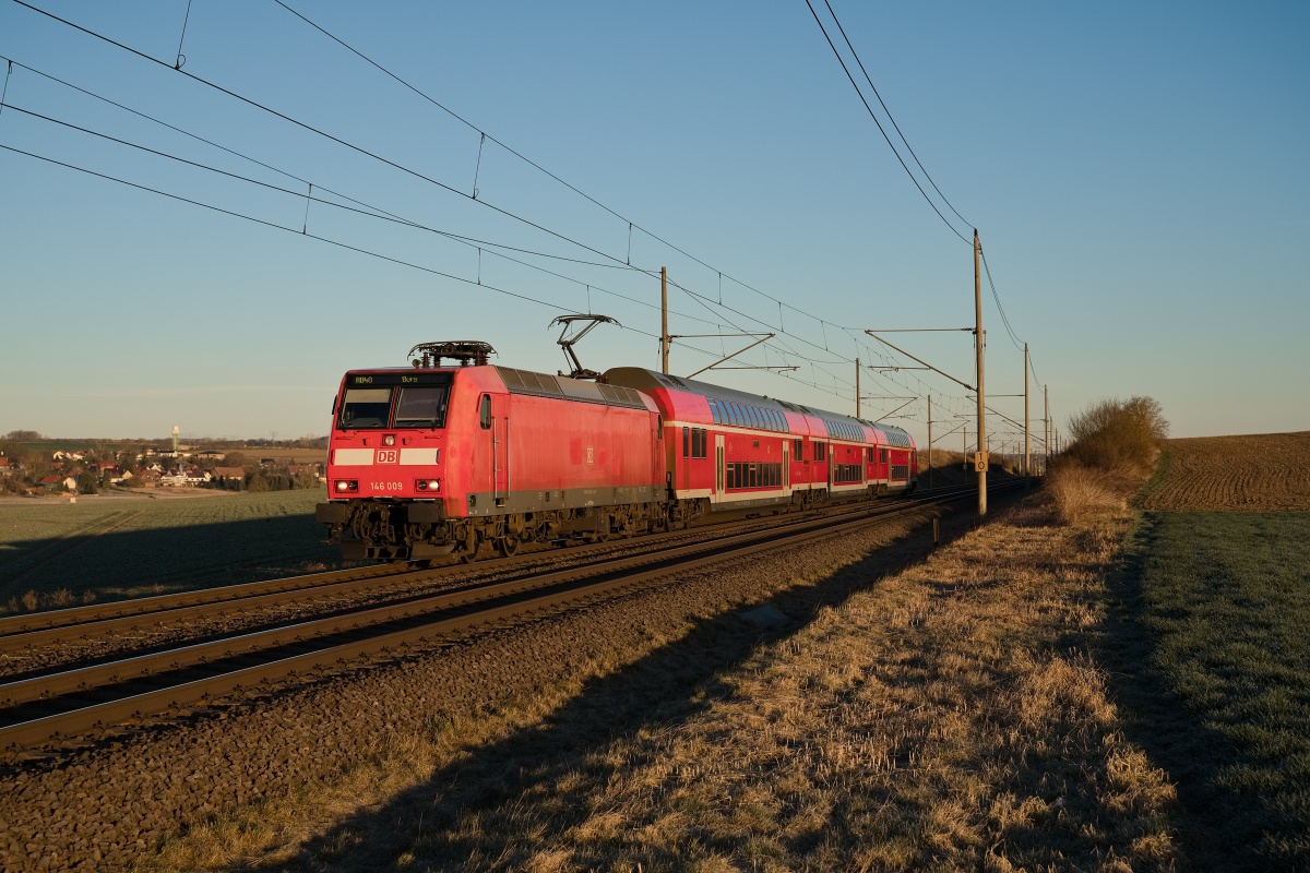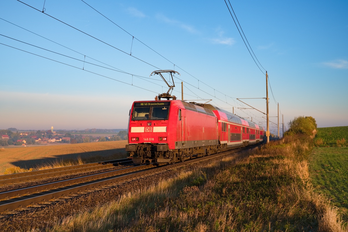 Dto. 146 009-6 früh morgens um 08:08 Uhr am 25.10.2024 bei Dreileben-Drackenstedt (LDD)