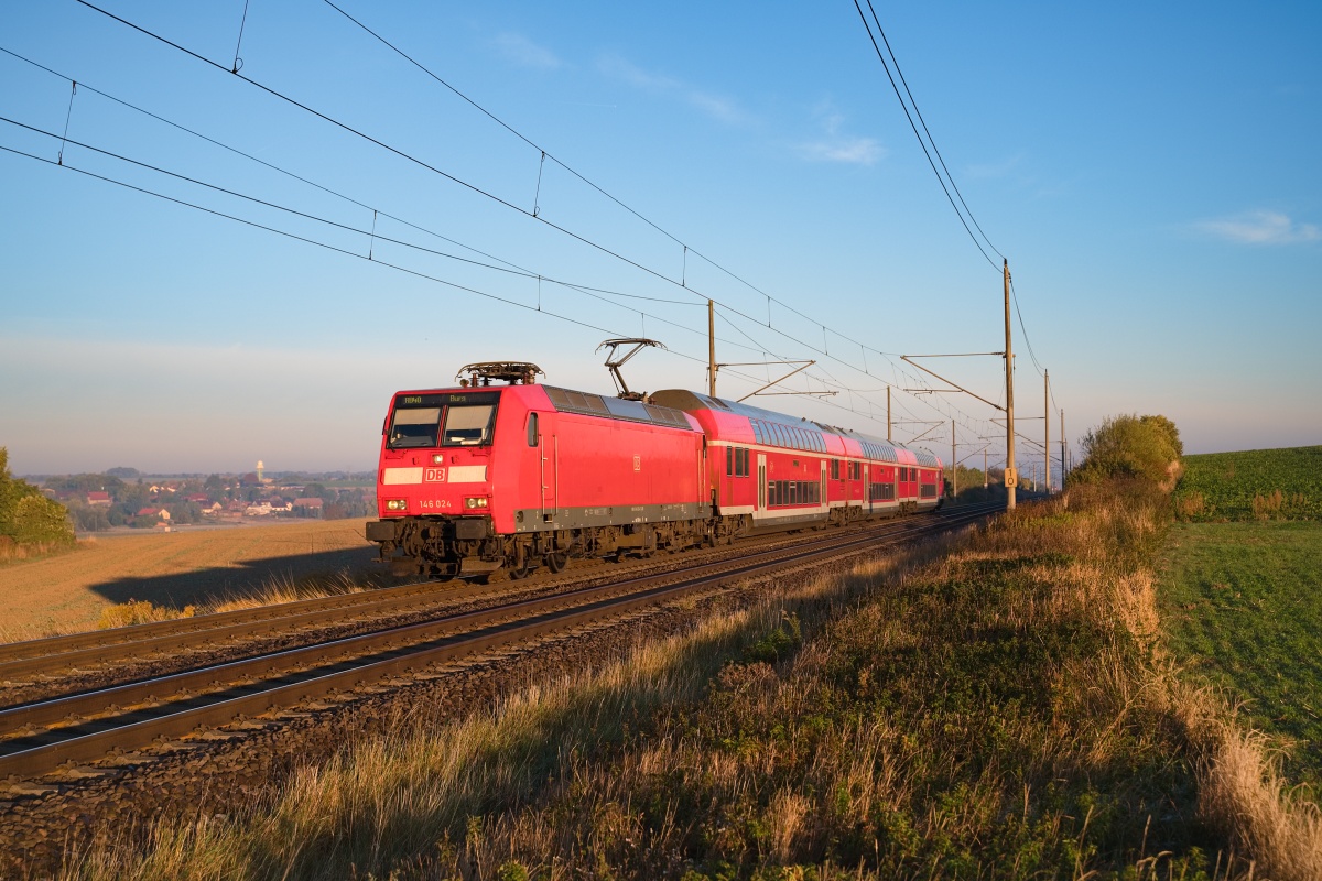 146 030-2 zum Sonnenaufgang am 23.10.2024 bei