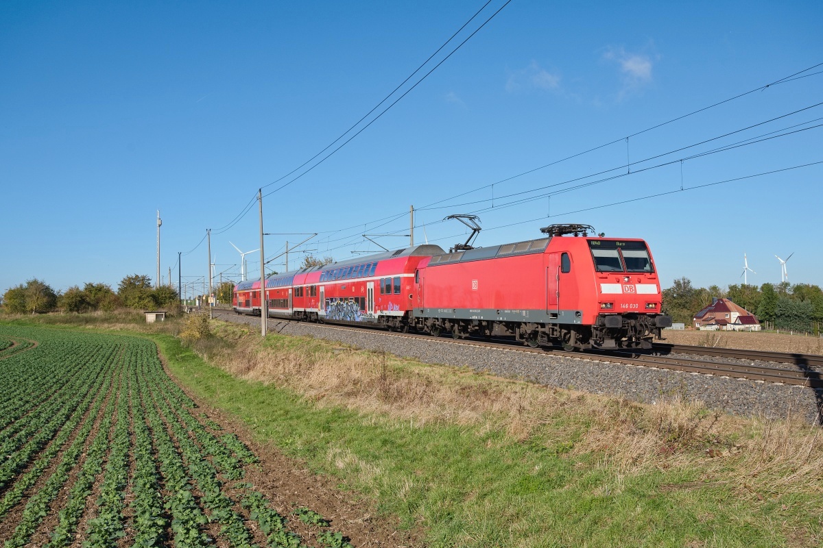 Dto. 146 031-0 morgens am 25.10.2024 um 10:03 Uhr bei Dreileben-Drackenstedt