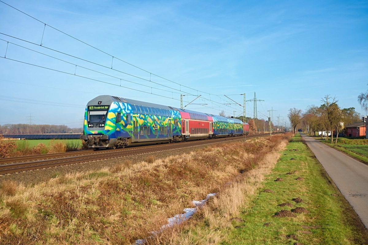 drei ebenso neuen Doppelstockwagen Rtg. Norden/Nienburg. In der