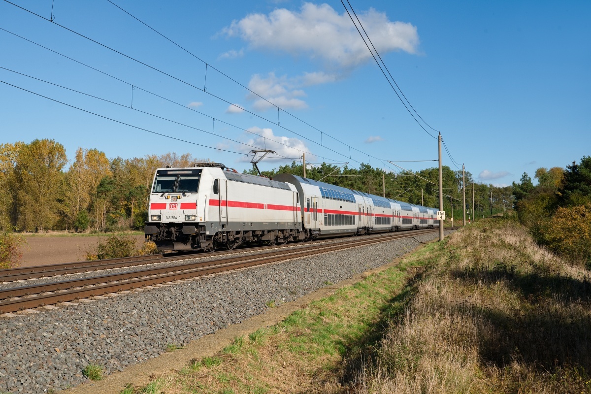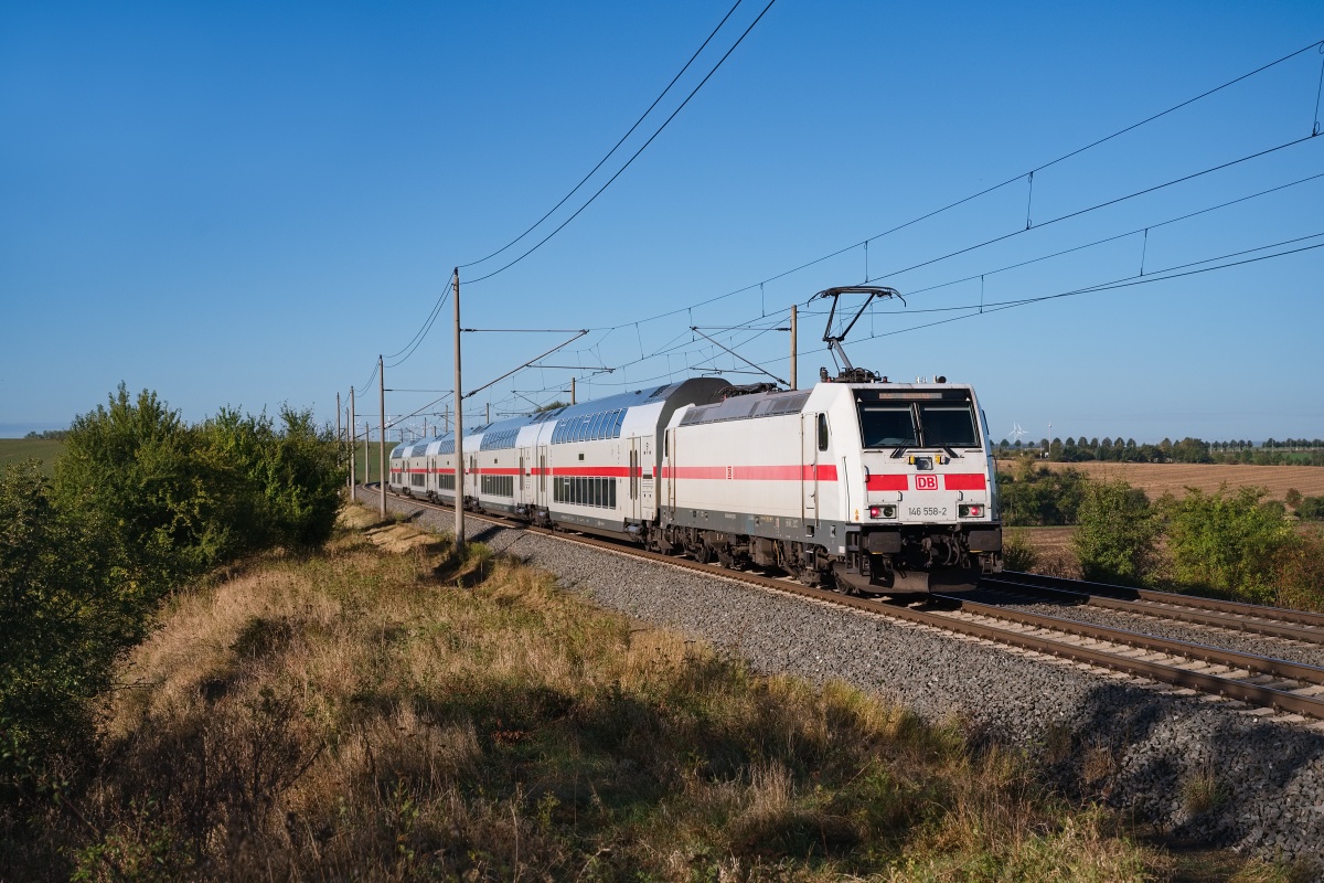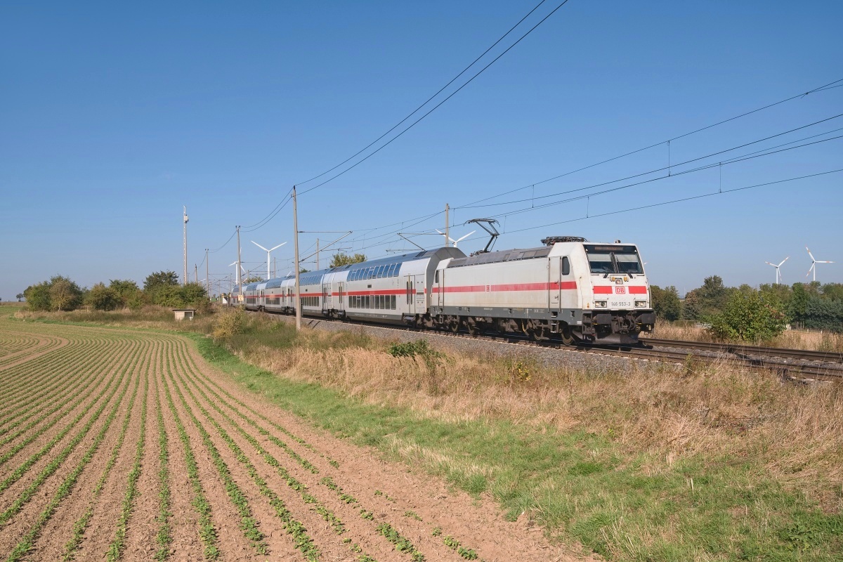 Dto. 146 560-8 am 16.10.2024 bei Ovelgünne mit dem IC 2034 von Leipzig