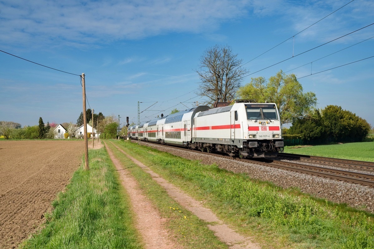 Dto. 146 557-4 am 15.04.2025 bei Stadthagen (HSHG) mit dem IC 2443 von Köln