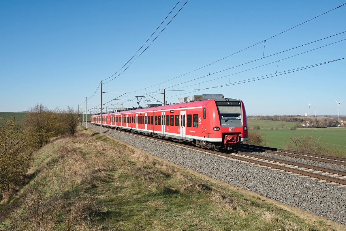 der S-Bahn Mittelelbe war hier am 19.03.2025 bei Ovelgünne (LOV) mit 425 011-4/425 511-3 als