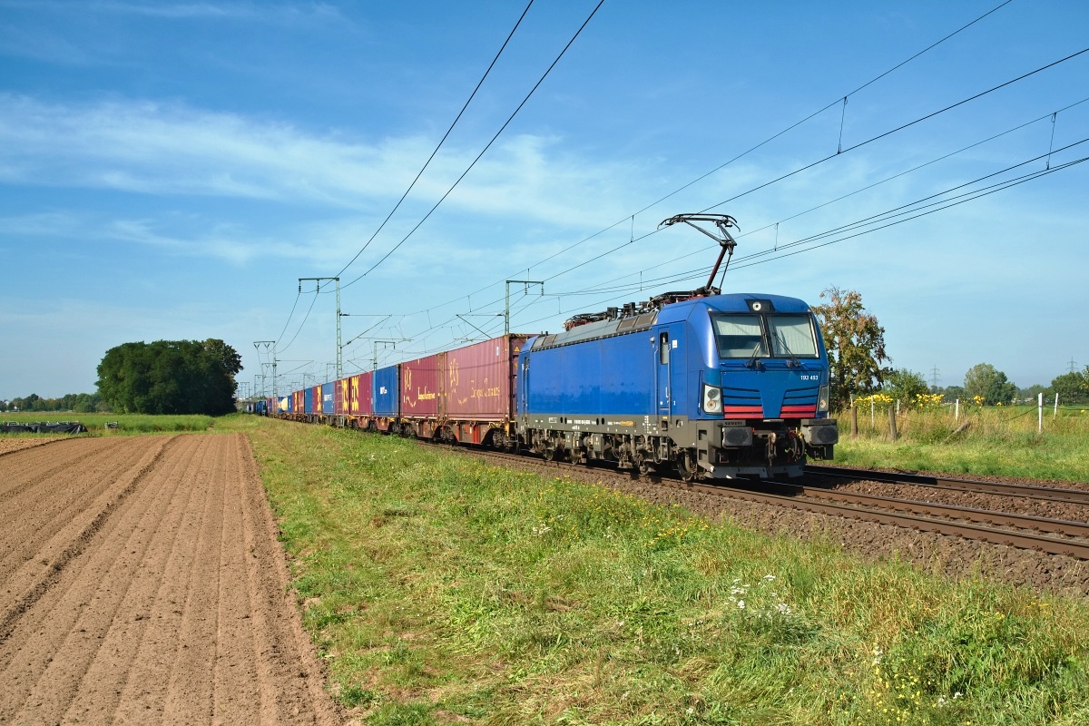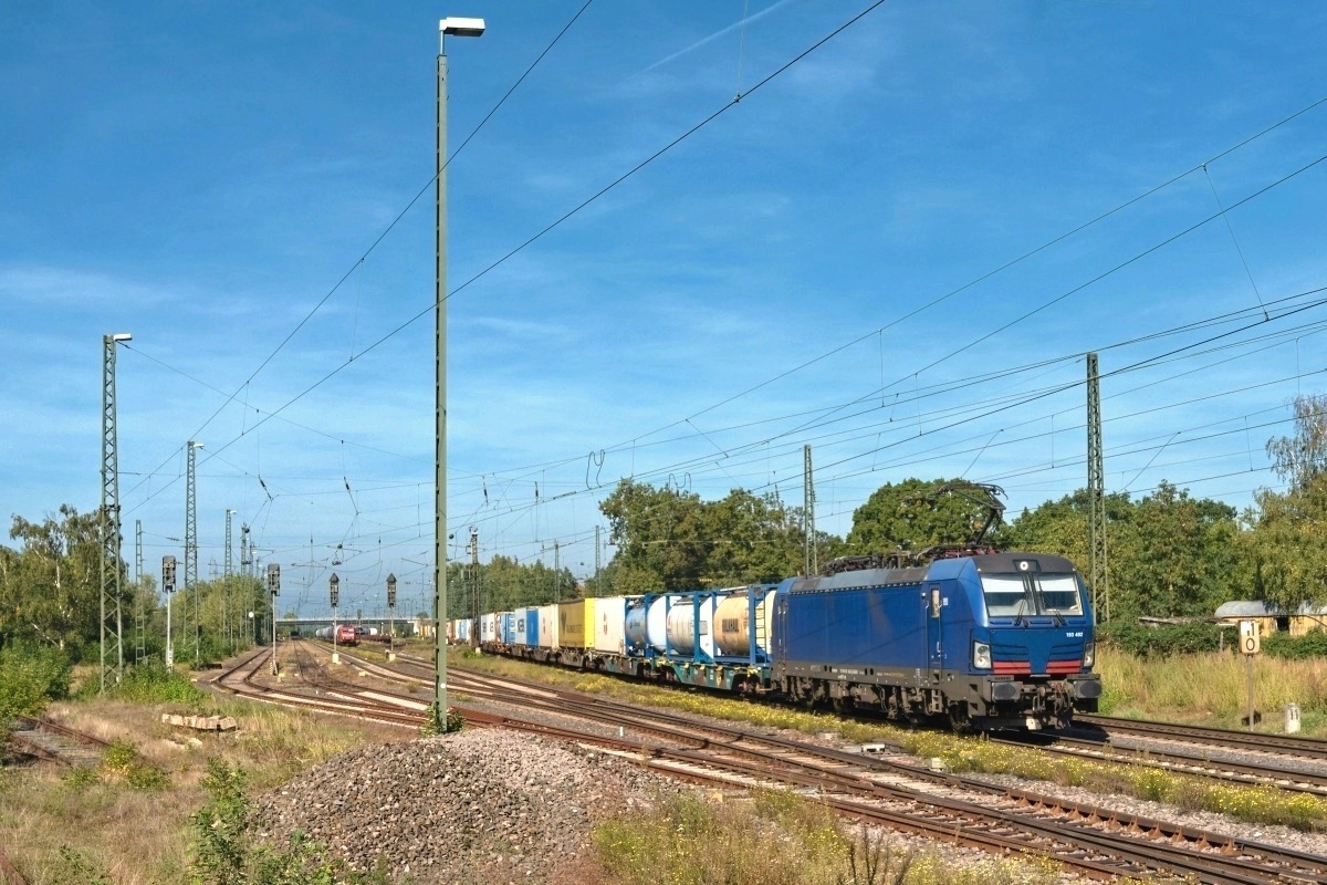 Wagenlok 482 025-3 und einem CT-Zug Rtg. Osten/Lehrte unterwegs...
