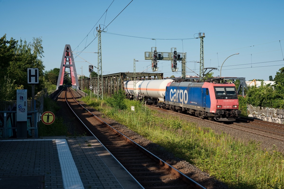 Dto. 482 005-6 am 19.06.2025. Hier passierte die Lok den Haltepunkt