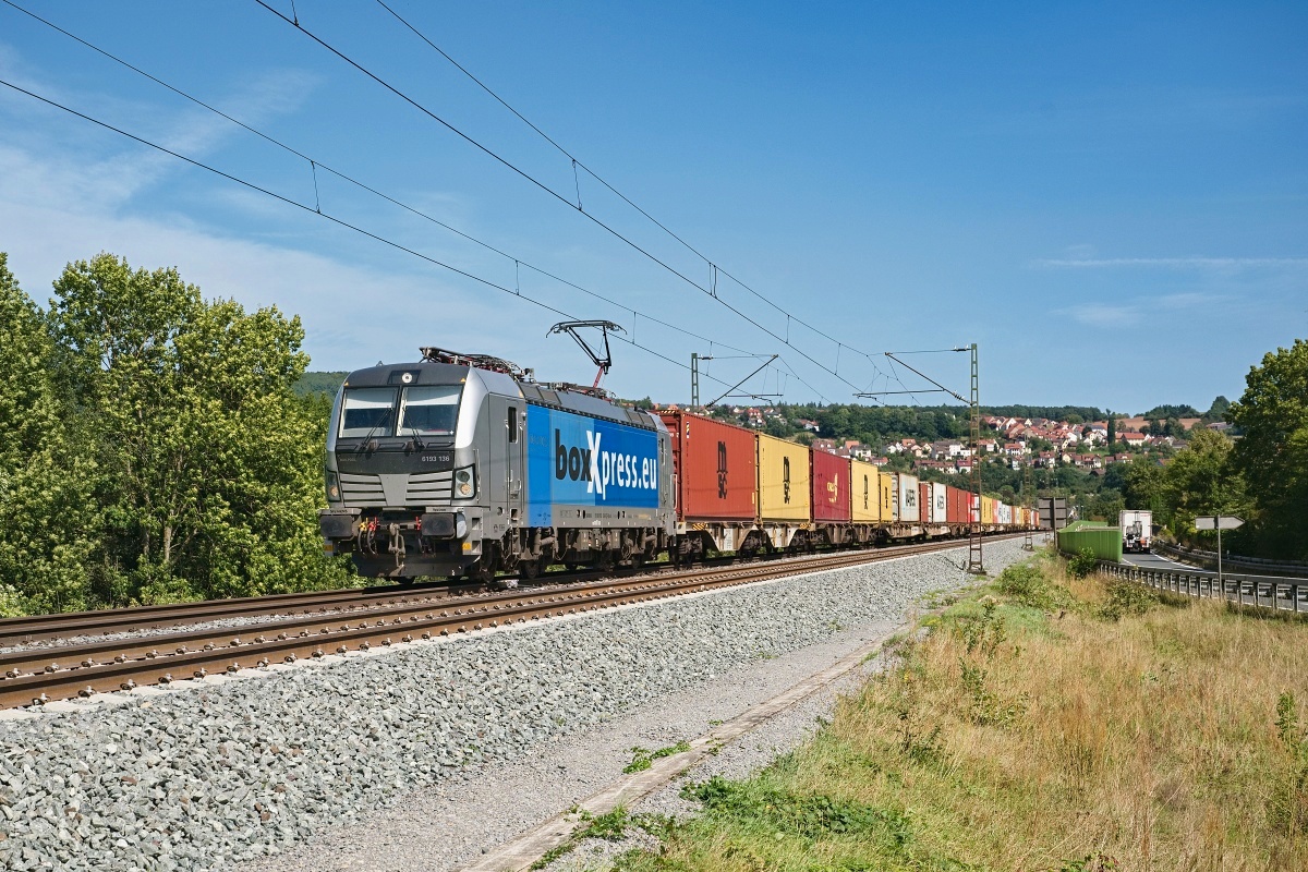 Dto. 193 136-9 am 23.08.2024 bei Wernfeld (NWFD) mit einem Containerzug Rtg.