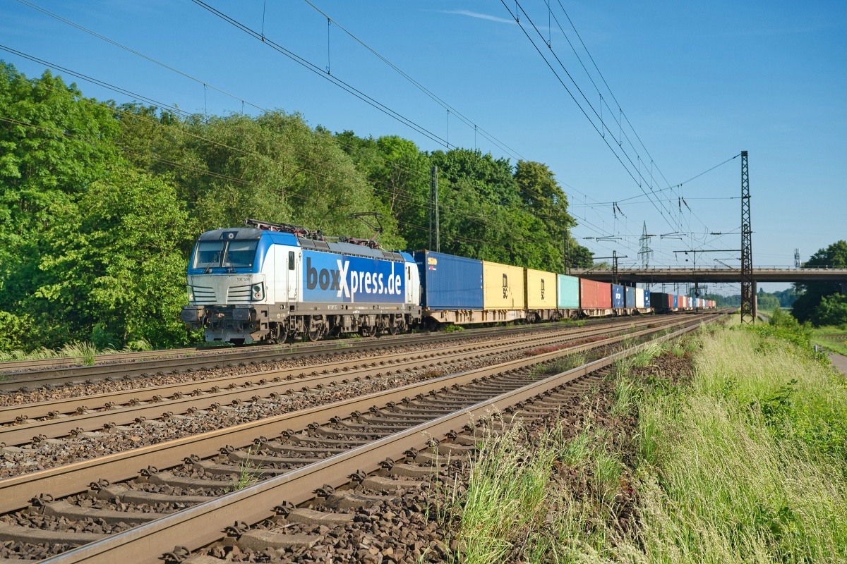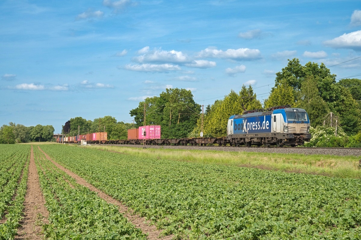 mit einem Containerzug Rtg. Löhne (HL) und dort weiter über Osnabrück nach