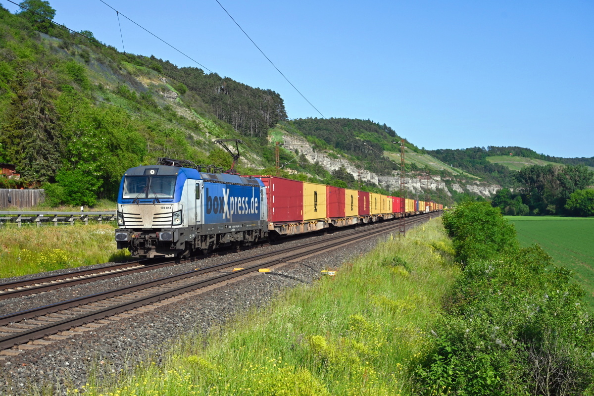 Dto. 193 833-1 am 30.06.2022 bei Wernfeld (NWFD) mit einem Containerzug Rtg.