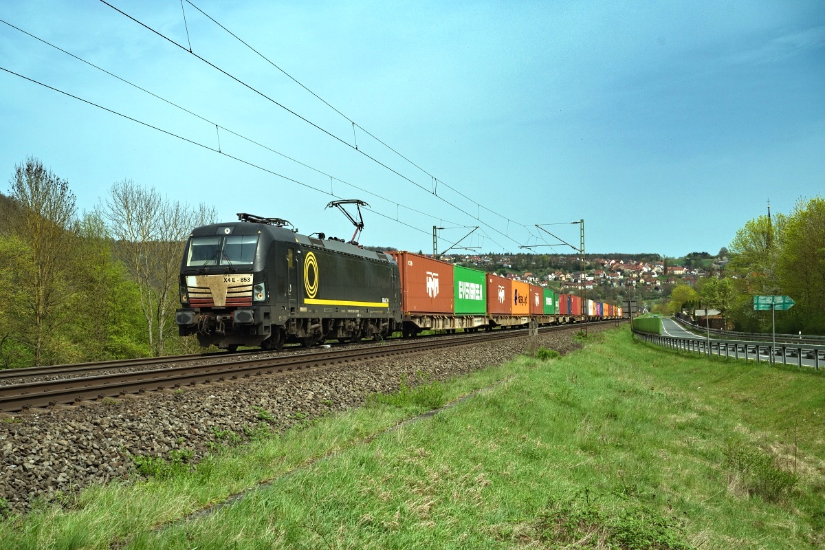 Dto. 193 881-0 am 07.04.2018. Hier passierte die Lok Harrbach im Maintal mit