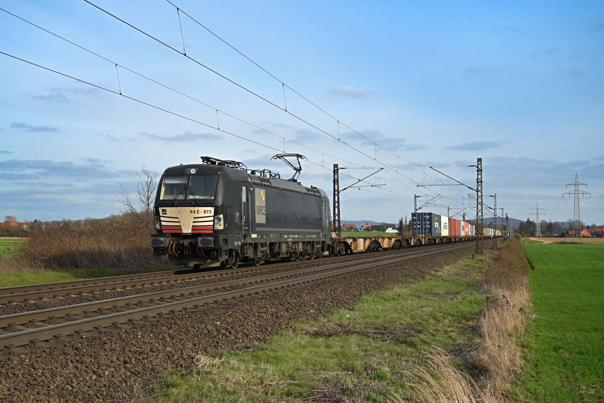 Dto. 193 873-7 am 21.04.2021 bei Poggenhagen (HPOG) im Morgenlicht mit einem