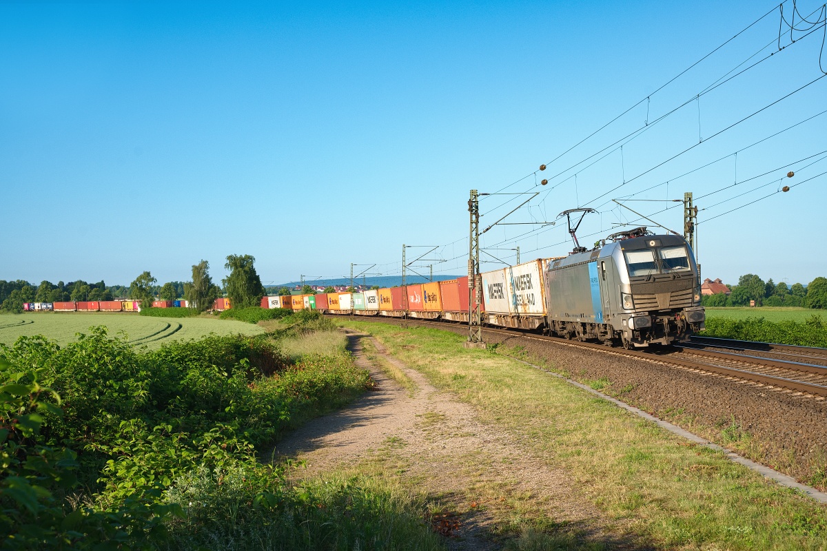 21.06.2022 bei Gambach im Maintal mit einem Containerzug Rtg,