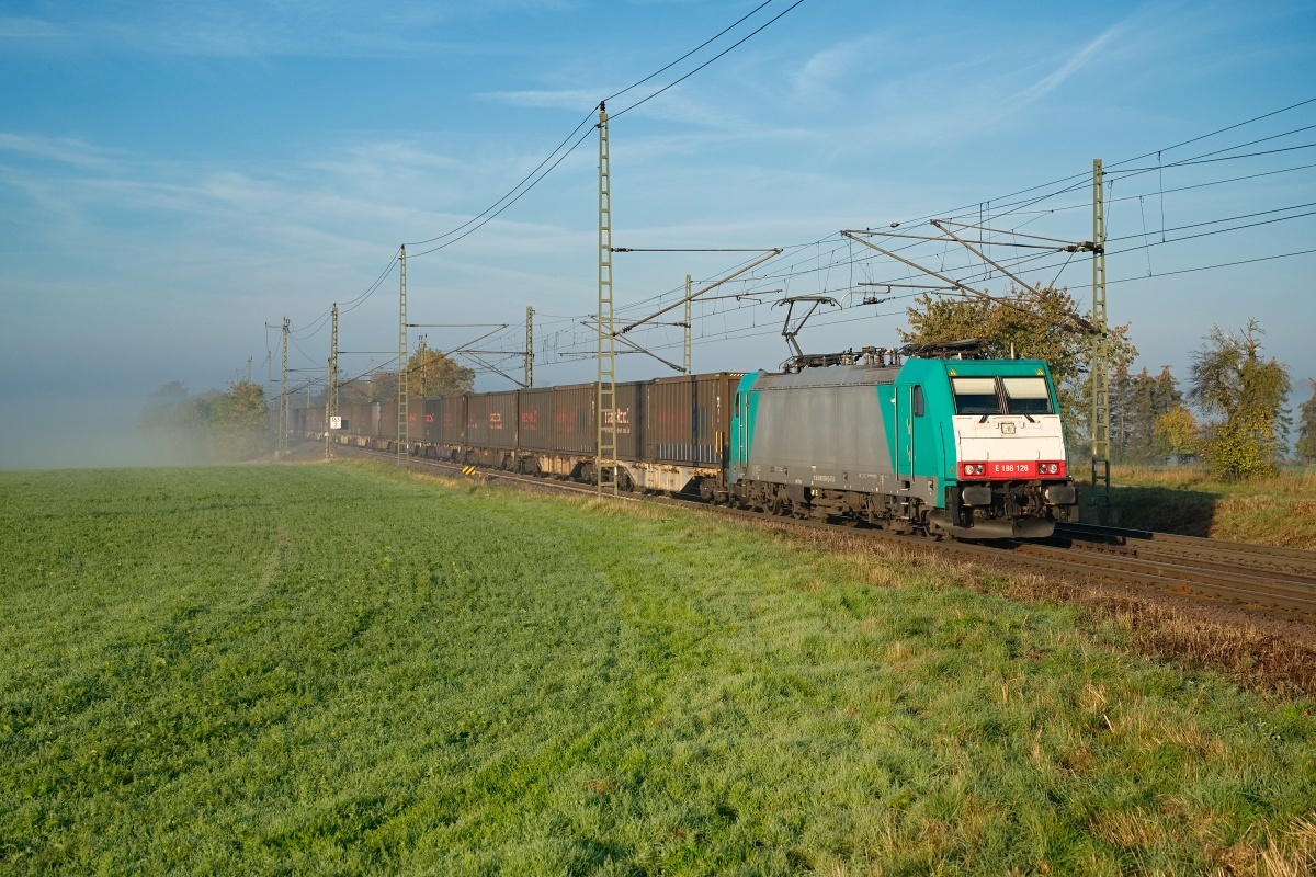 Dto. 186 127-7 am 28.09.2023 bei Klein-Gerau (FKGE) mit einem KLV Rtg.