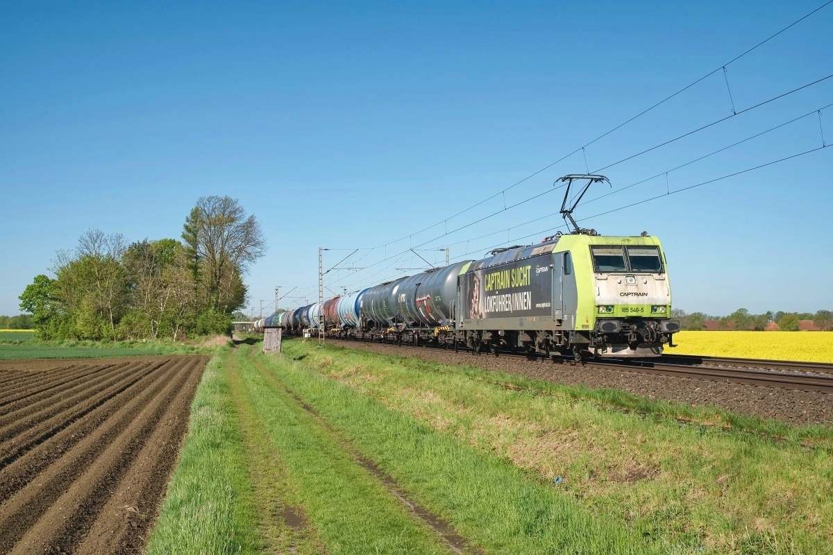 Dto. 185 649-1 am 17.05.2023. Hier passierte die Lok Burgdorf (HBGD) mit