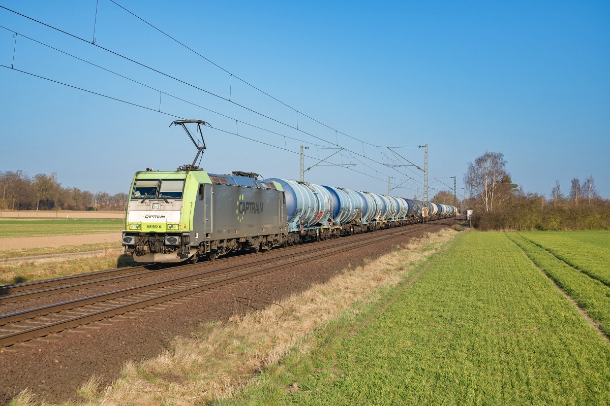 Dto. 185 562-6 früh morgens am 21.03.2025 bei Woltorf (HWOT) mit einem
