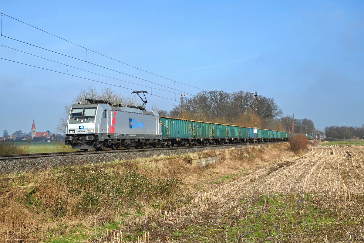 Dto. 186 371-1 am 25.10.2024 bei Ovelgünne (LOV) mit dem Lovosice Shuttle