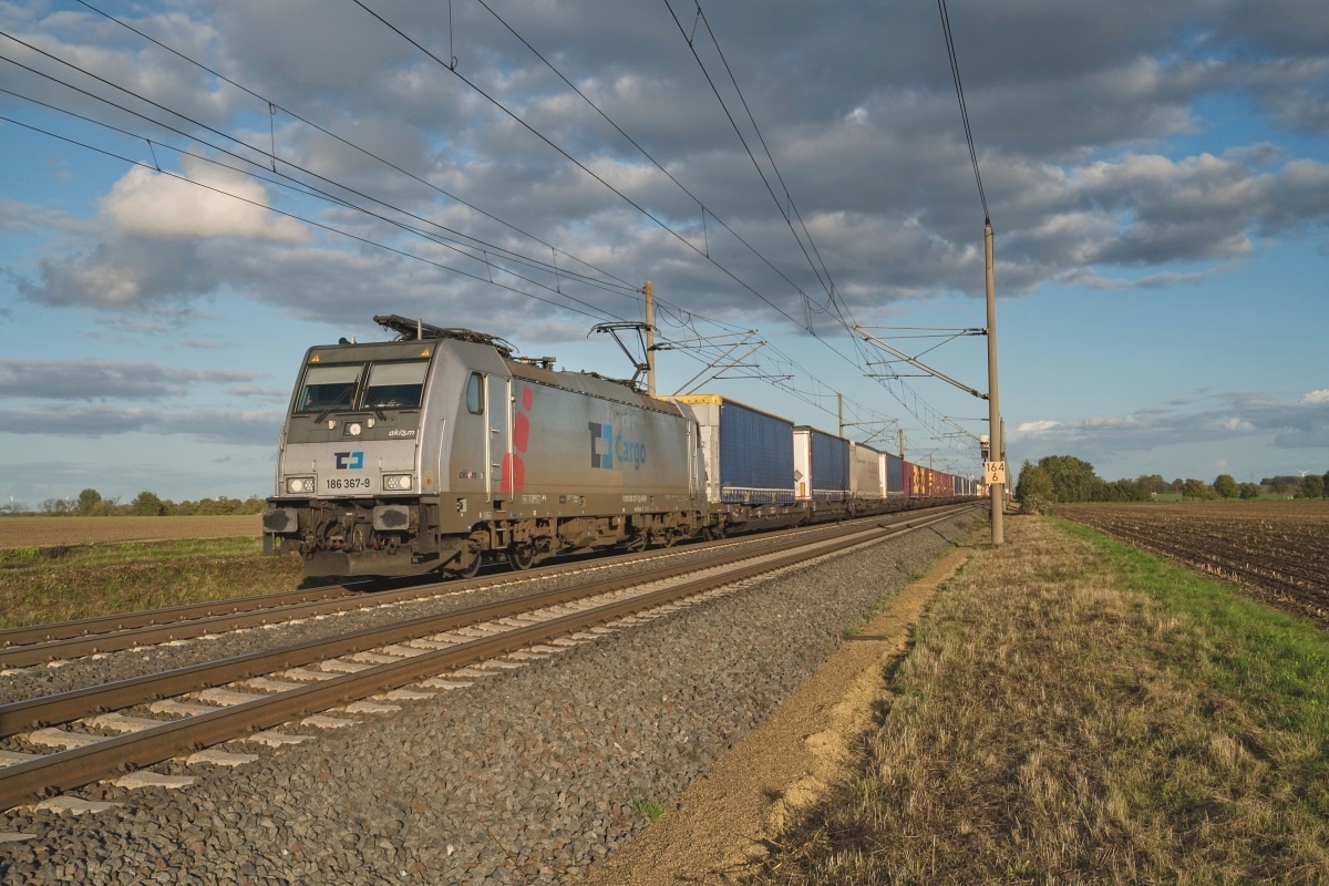 186 371-1 am 15.10.2024 bei Ovelgünne (LOV) mit dem Lovosice Shuttle DGS