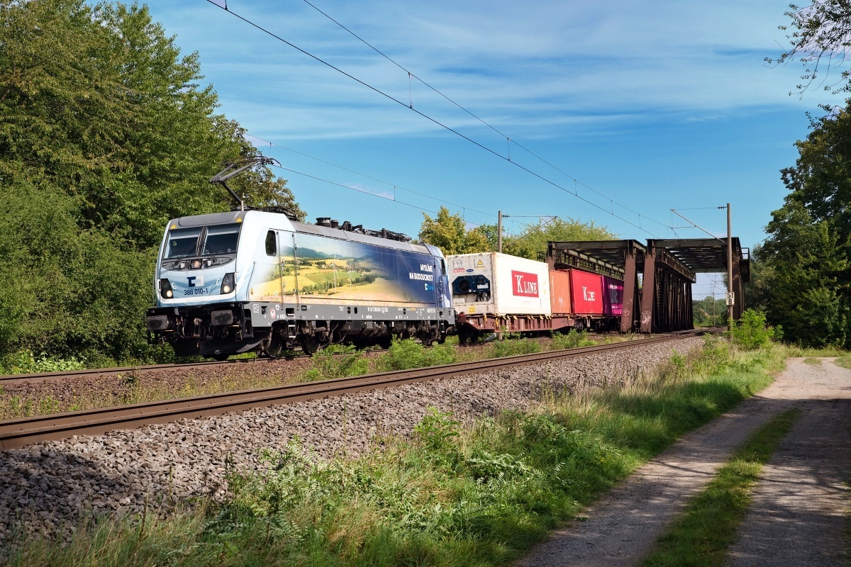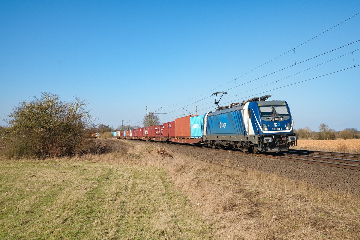 Dto. 388 005-1 am 06.08.2024 bei Schandelah (HSDL) mit dem Containerzug