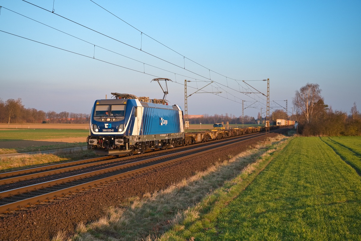 Dto. 388 020-0 im Abendlicht am 13.06.2025 bei Vechelde (HVEC) Sierße mit