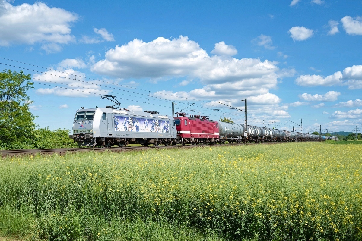 Dto. 185 540-2 am 11.05.2025 auch bei Bückeburg mit Wagenlok 243