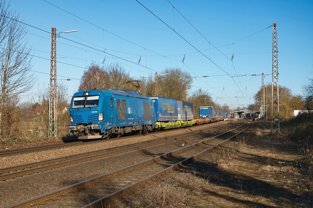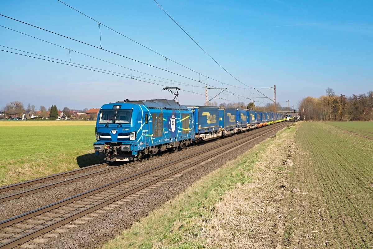 Dto. 248 041-6 am 04.03.2025 bei Kirchhorsten (HKHN) mit dem LKW Walter KLV