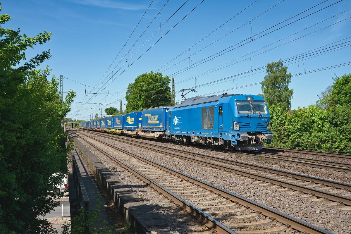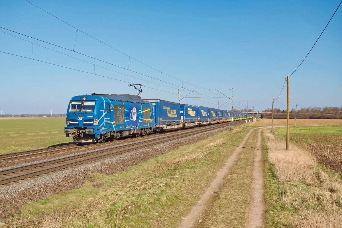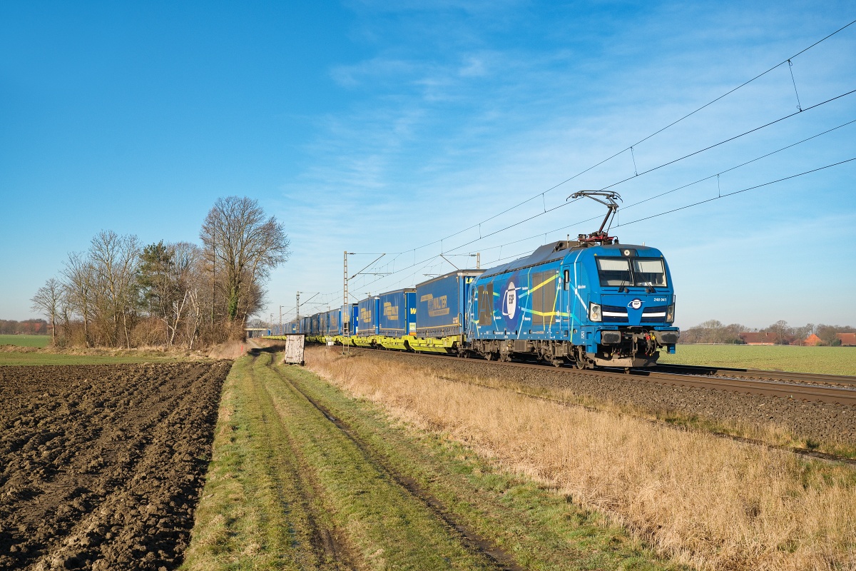 Dto. 248 041-6 am 05.03.2025 bei Lindhorst (HLH) mit dem LKW Walter KLV nach