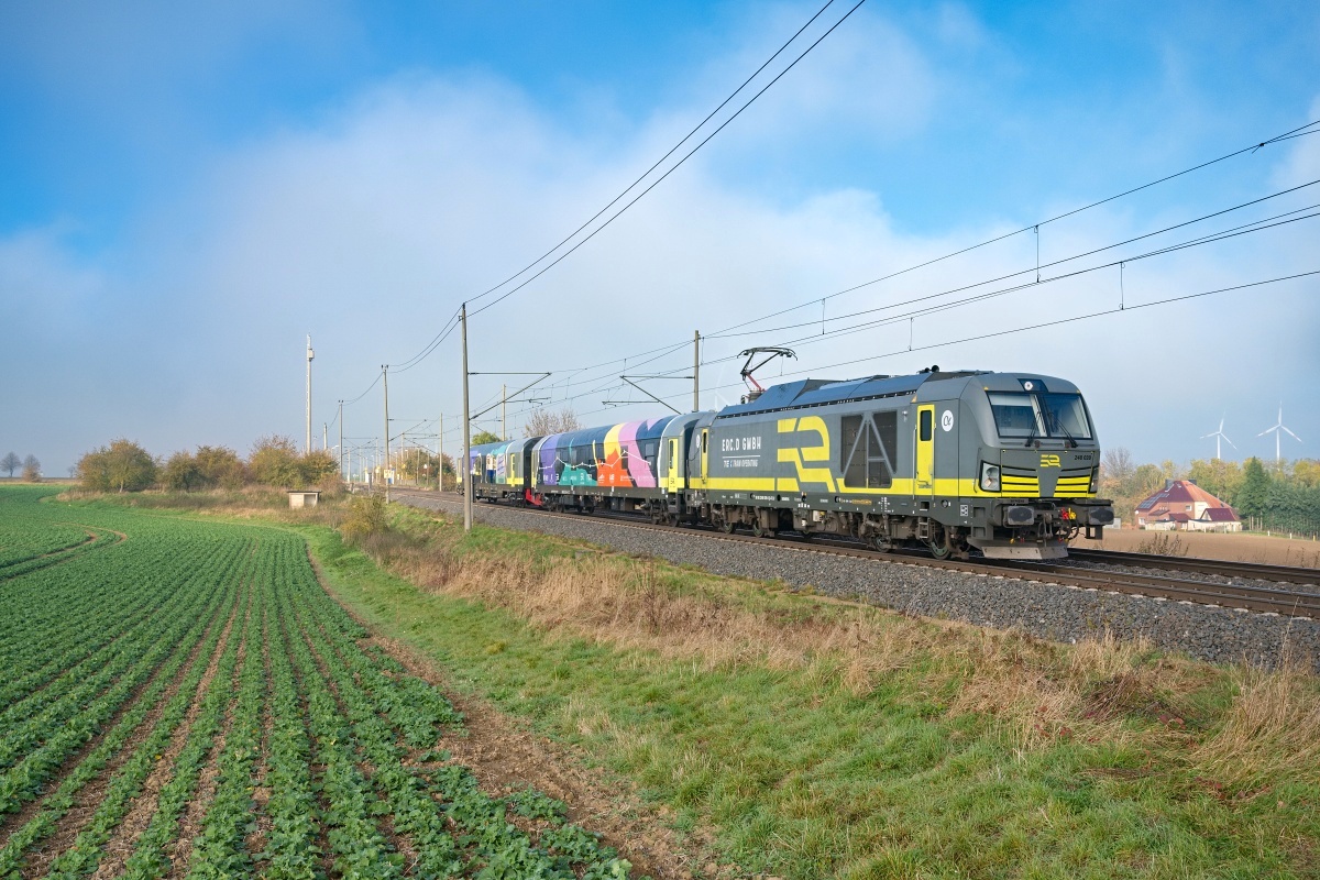 182 598-3 im aktuellen Design am 12.10.2022. Hier war die Lok bei Bückeburg (HBKB)