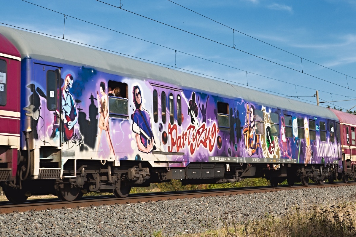 Euro Express Party Zug Wagen Typ WGm Wagenummer: (56 80 89-80 009-4 D-EURO) Ort: Ovelgünne 18.10.2024 - Zuglok TCS "train-charter" 101 128-7. Der Wagen hing in TCS 26048 von Köln Hbf (KK) nach Weimar (UWM)