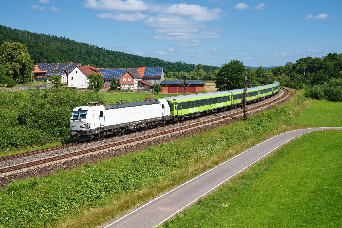 7193 602-8 (NVR: 91 80 7193 602-8 D-ELOC) war hier am 19.06.2025 im Haunetal bei Hermannspiegel mit dem Flix15 von Hamburg nach Stuttgart unterwegs...