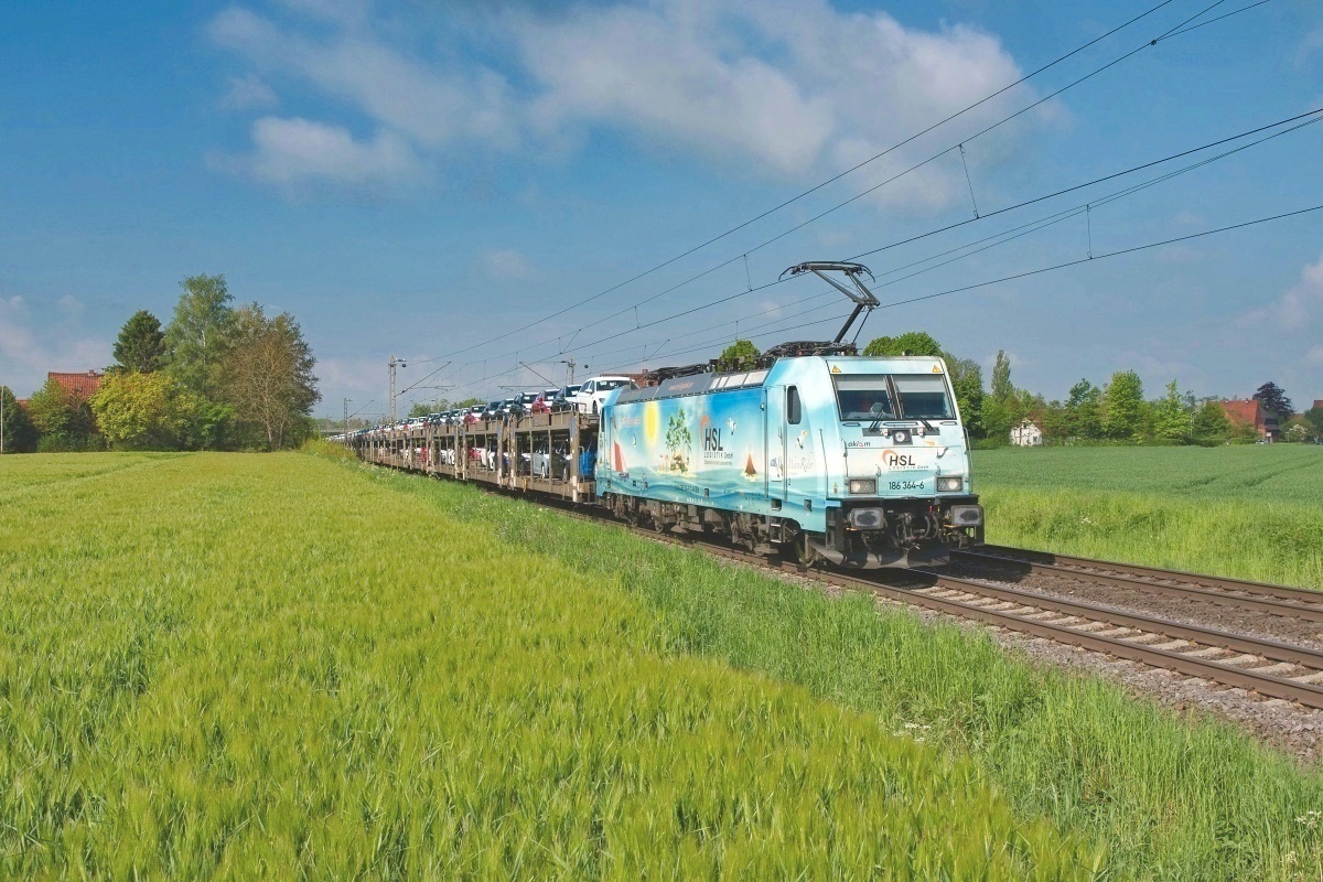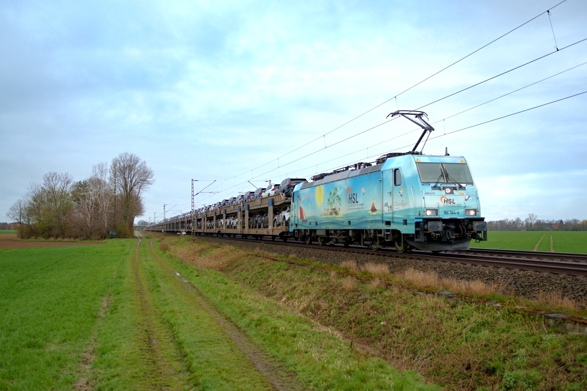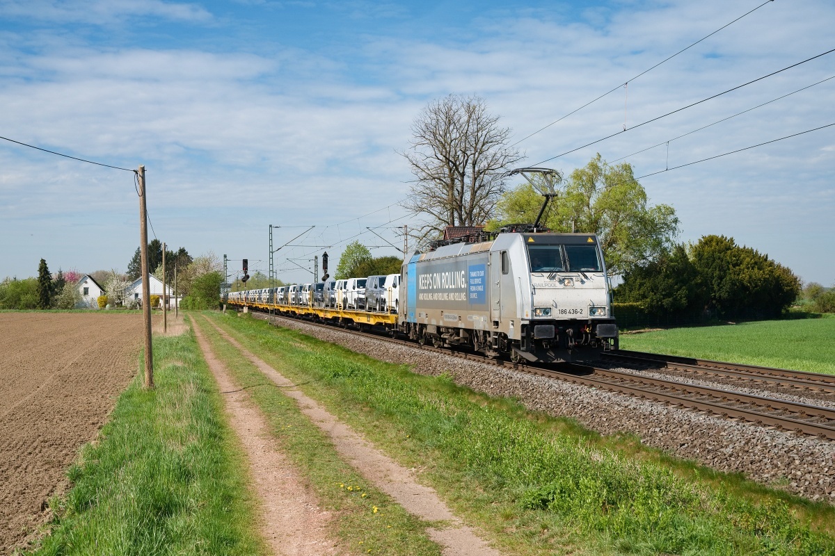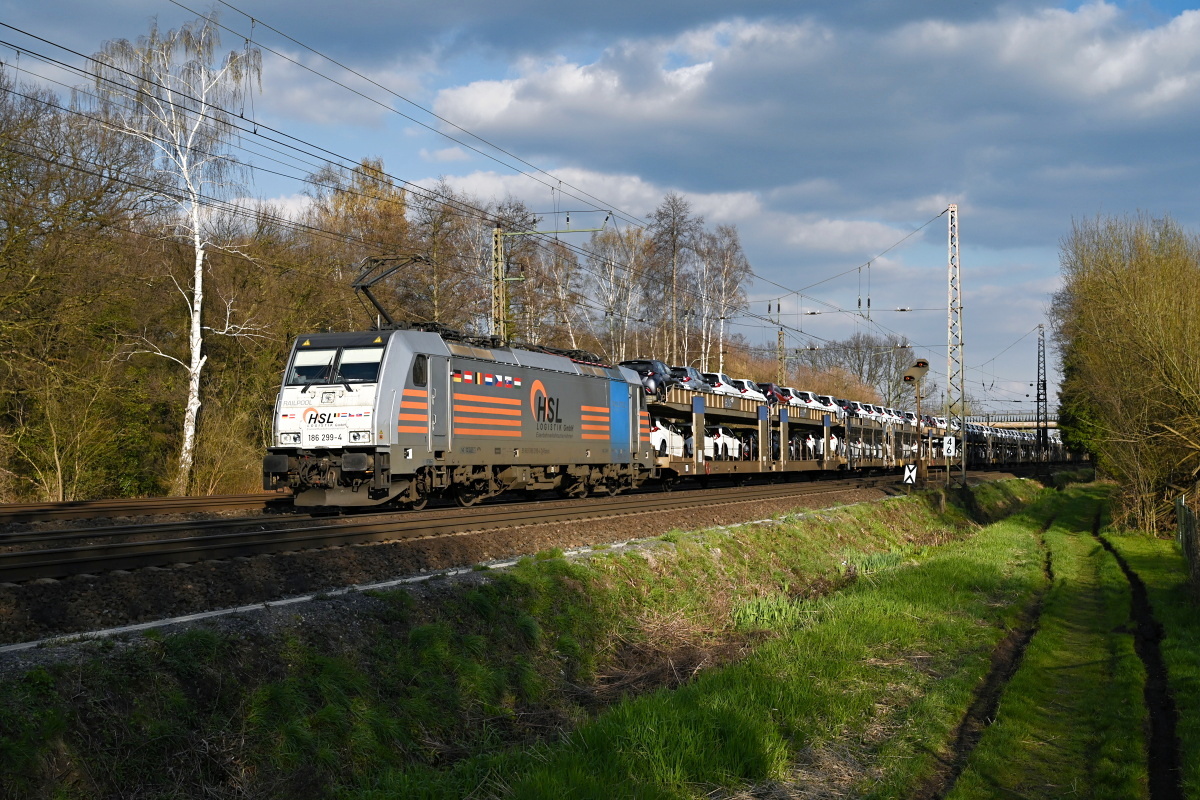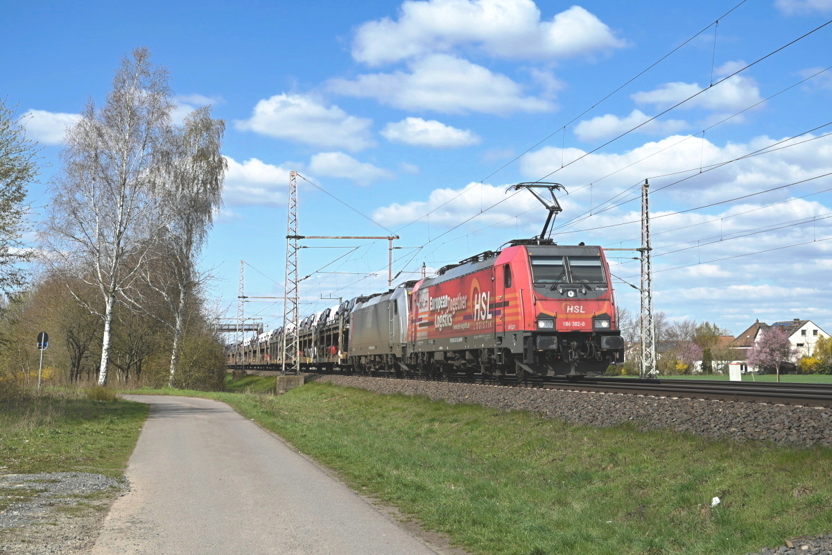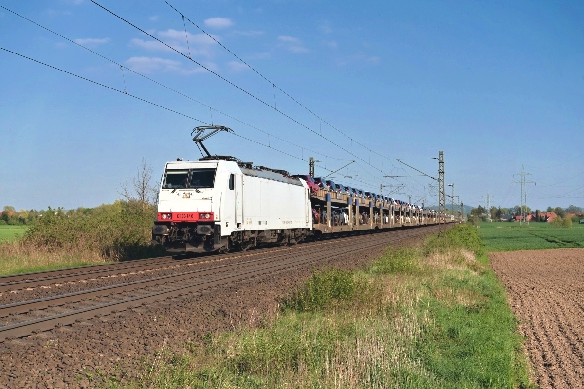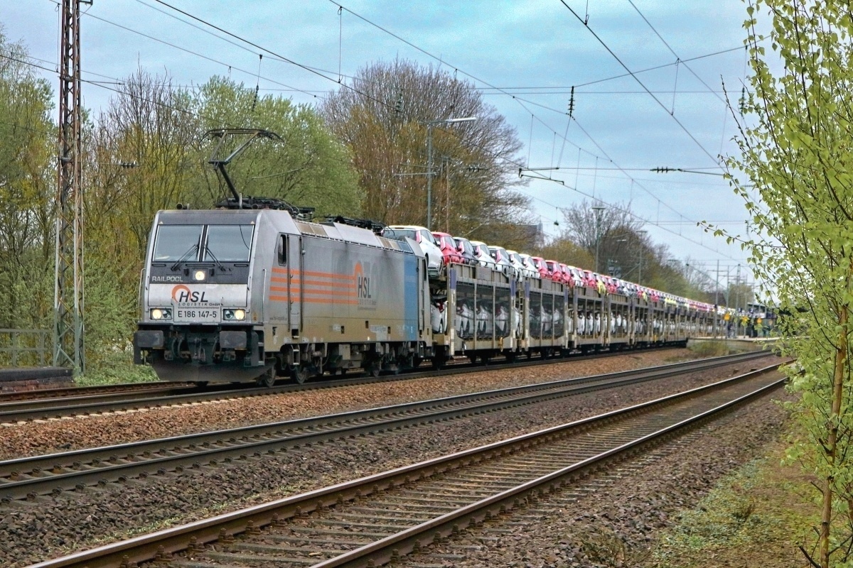Dto. 186 363-8 am 15.04.2025 bei Stadthagen (HSHG) mit einem BLG Autozug