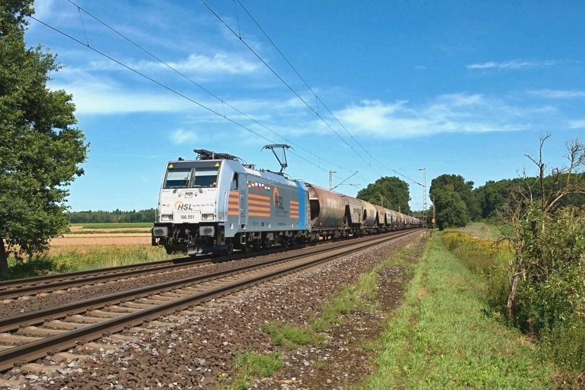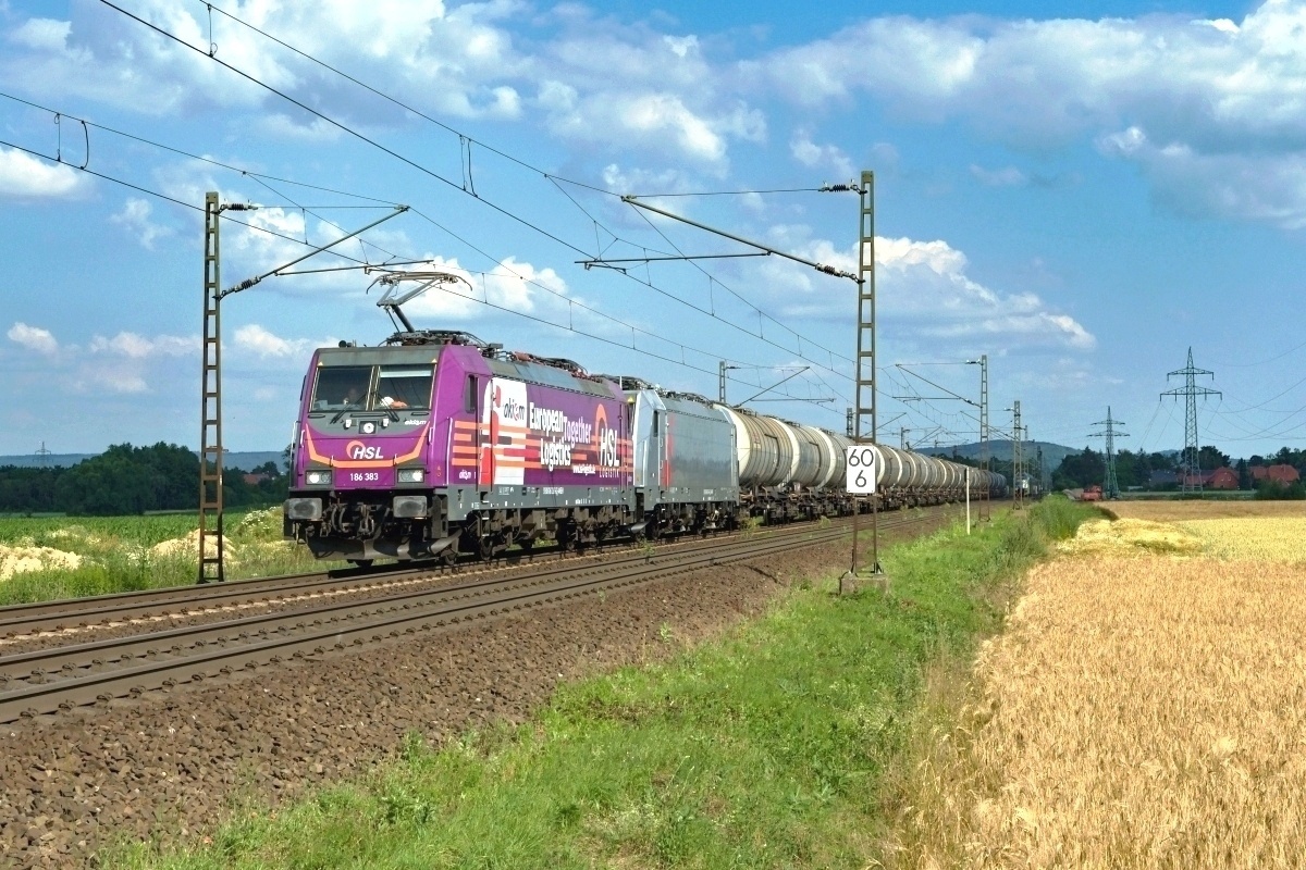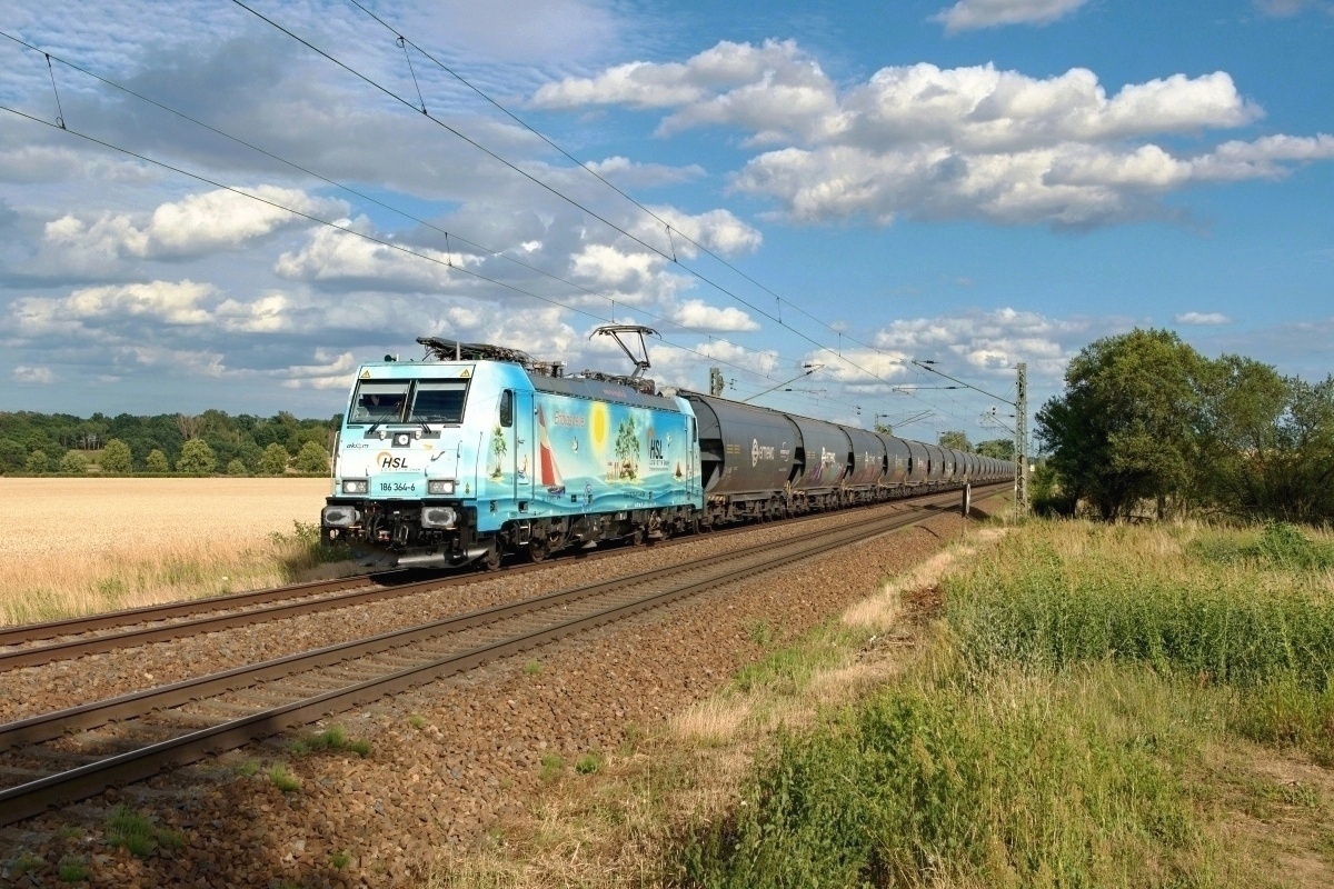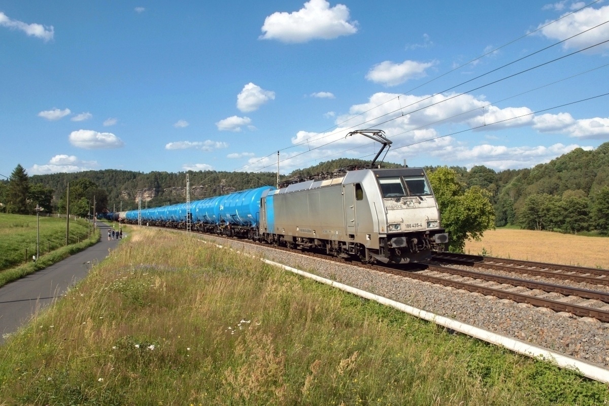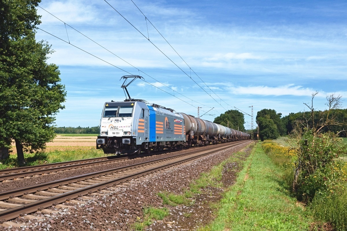 Dto. 186 257-2 am 24.08.2022 bei Linsburg (HLBU) mit einem Kesselwagenzug