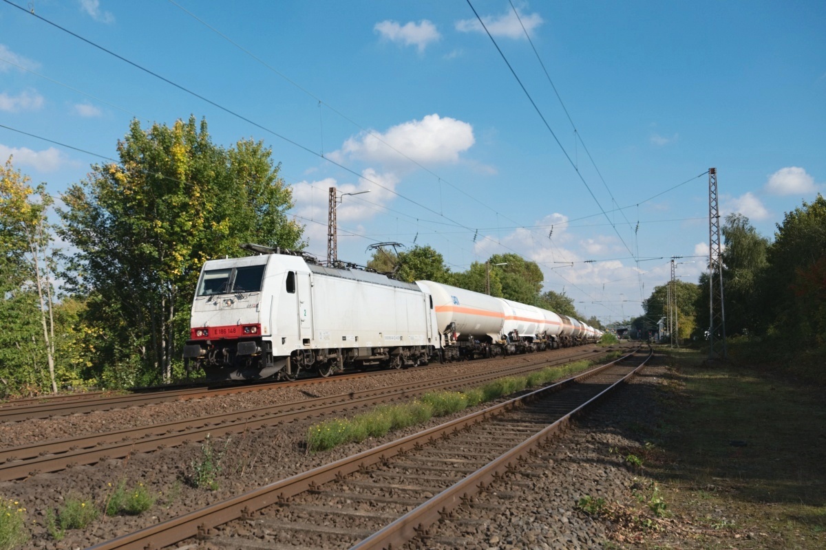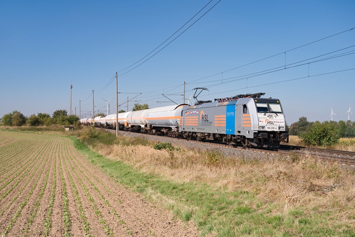 Dto. 186 299-4 am 20.09.2024 bei Ovelgünne (LOV) mit Gaskesselwagen Rtg.