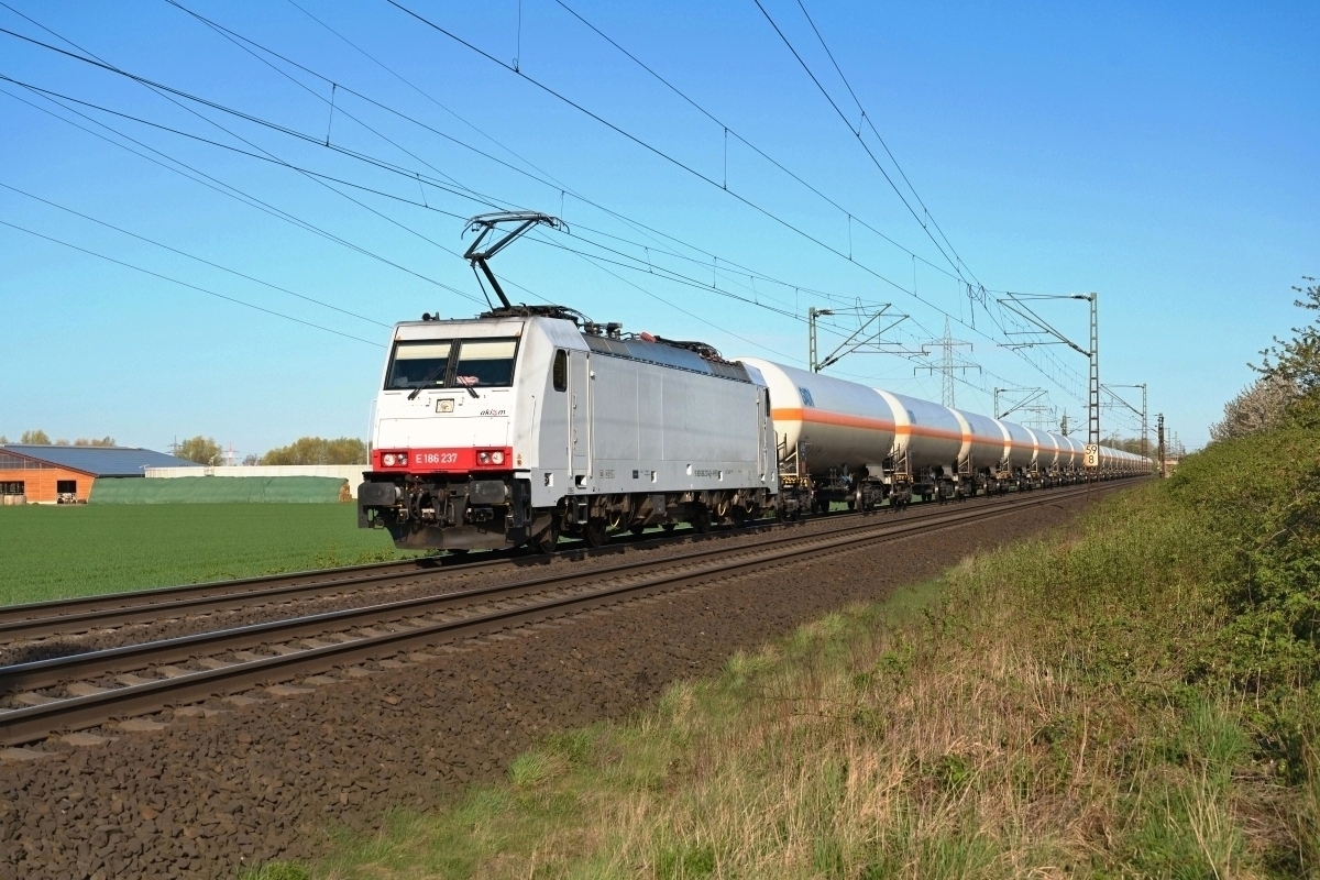 Dto. 186 237-4 am 23.04.2022 bei Stadthagen (HSHG) Probsthagen mit einem