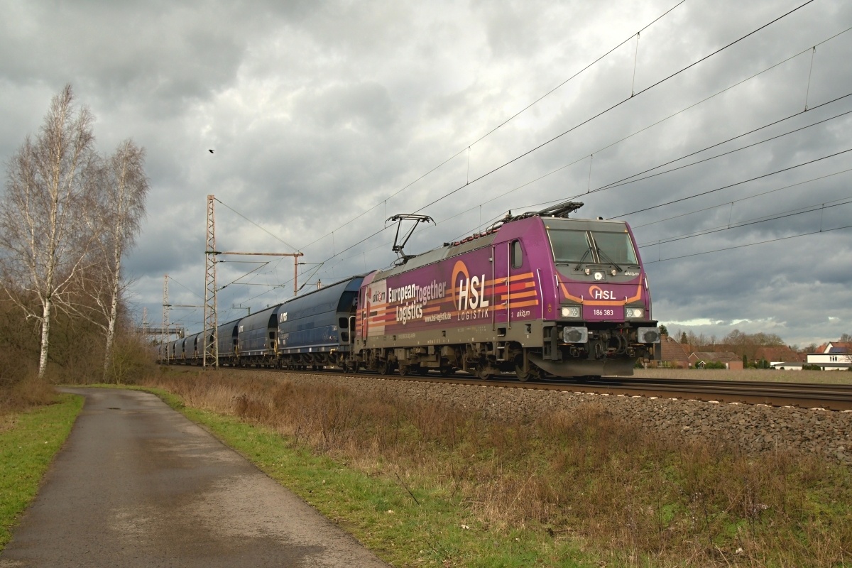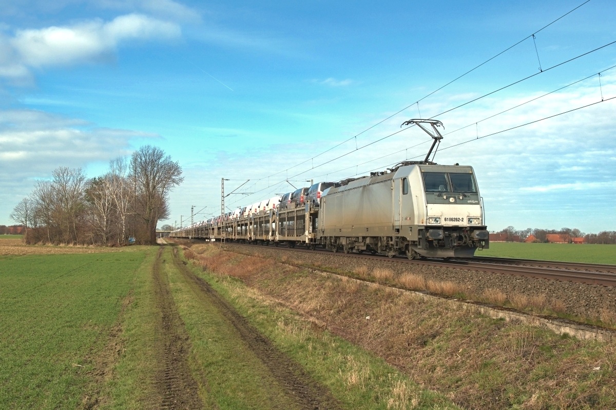 war hier am 19.02.2021 bei Lindhorst (HLH) Vornhagen mit einem Voll-Autozug