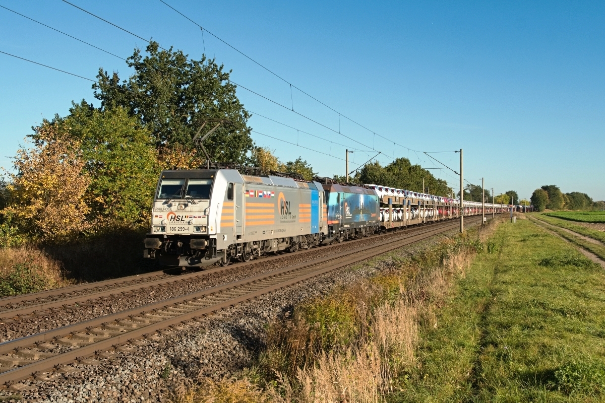 Dto. 186 299-4 am 09.10.2021 bei Woltorf (HWOT) mit Wagenlok 185 601-2 und
